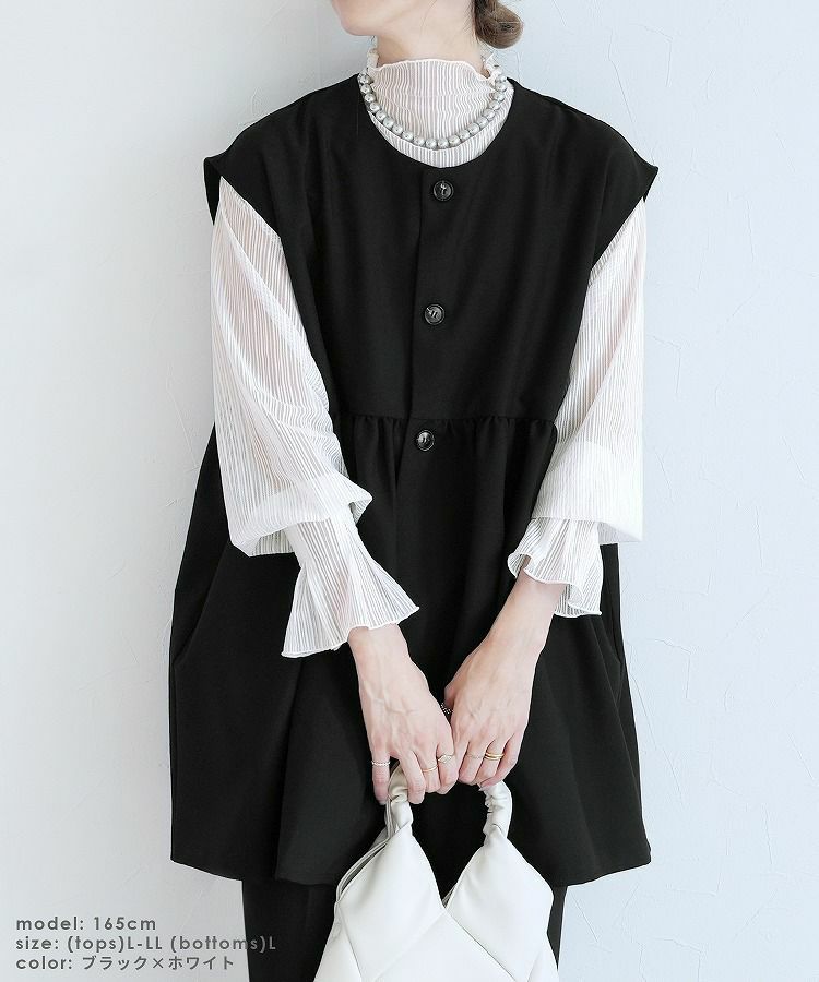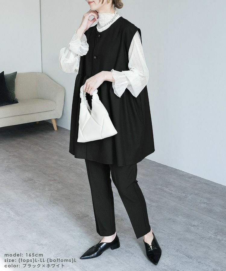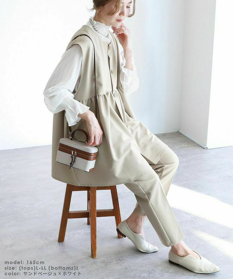 ペプラムベスト×テーパードパンツ×トップスセット(bel-hr-0616-s1) 宅配便発送