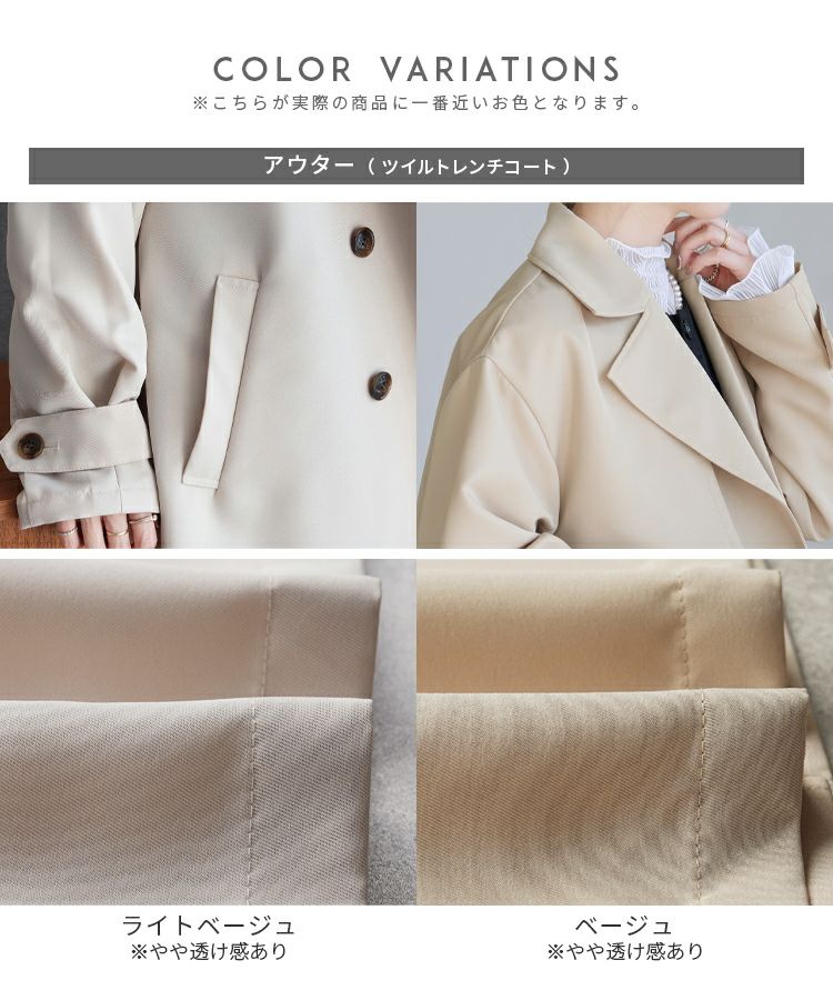 ペプラムベスト×テーパードパンツ×トップス×トレンチコートセット(bel-hr-0616-s2) 宅配便発送