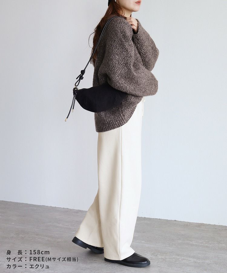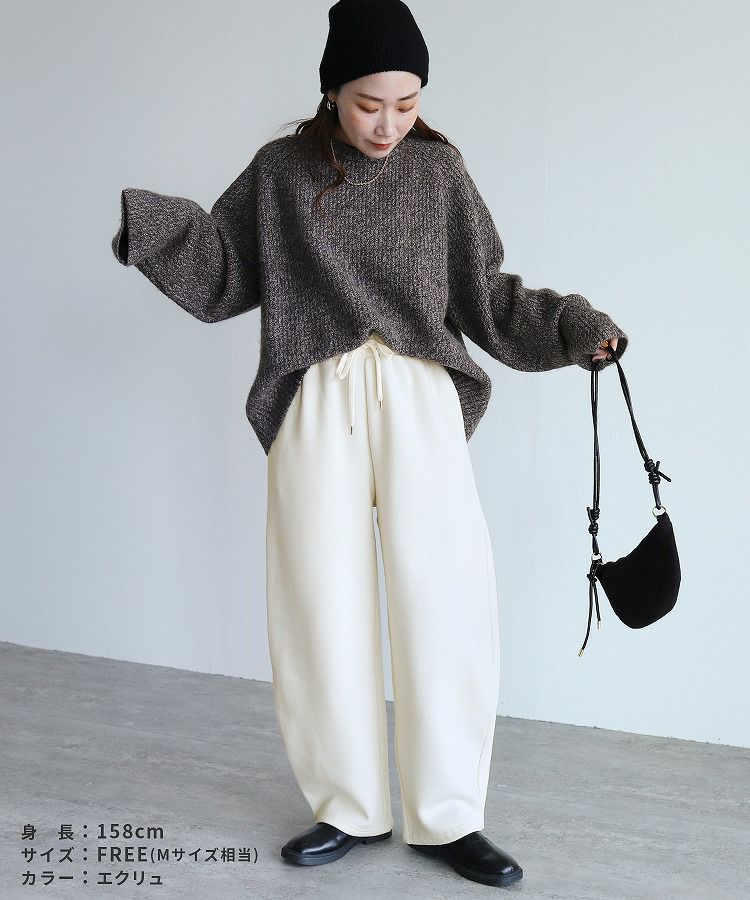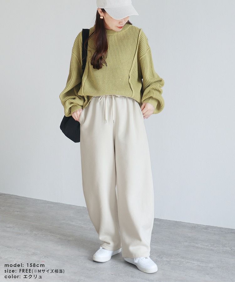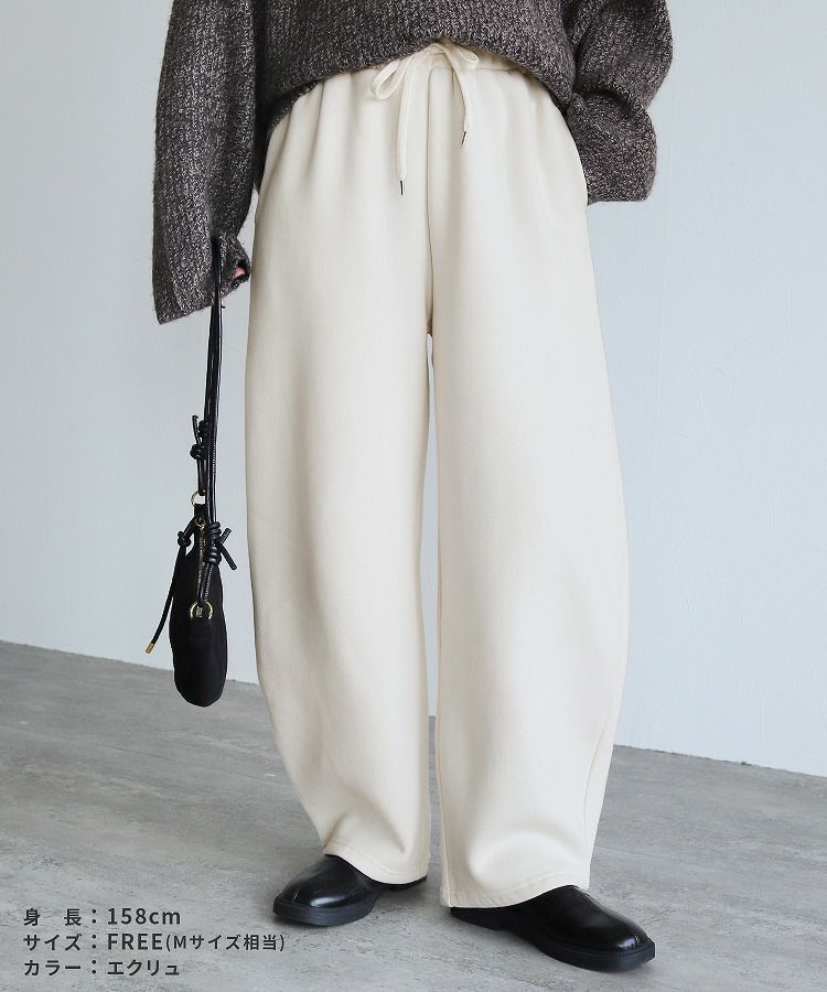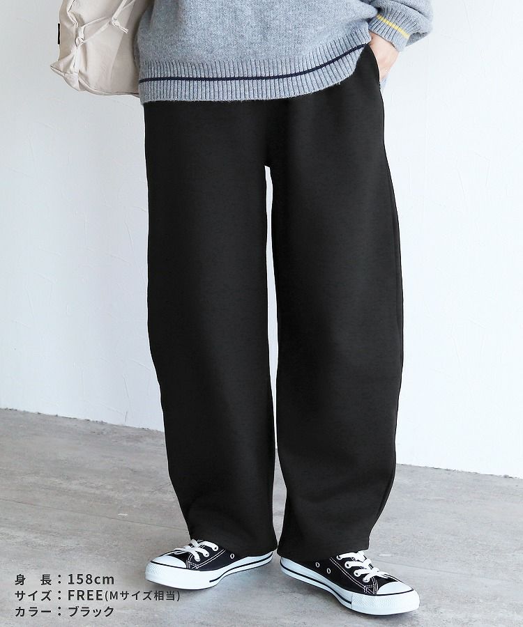 レディース ボトムス パンツ カーブパンツ ワイドパンツ セミワイド ゆったり ポケット付き 細見え 脚長効果 美脚効果 脚長 美脚 落ち感 ウエストゴム カジュアル シンプル 大人女子 20代 30代 40代 30代ファッション 20 30 40 50 20代 30代 40代 50代 30代コーデ 40代ファッション 40代コーデ 着回し 無地 ブラック 黒 エクリュ 白 ママコーデ ママファッション スウェット ウエストゴム 洗濯可能 洗濯可 家庭洗濯 洗濯 シワになりにくい ポケット付き ポケット 着回し 着回し力 ストレッチ 伸縮性 伸縮 伸びる 履きやすい 動きやすい 大きめ 小さめ ゆったり 体型カバー