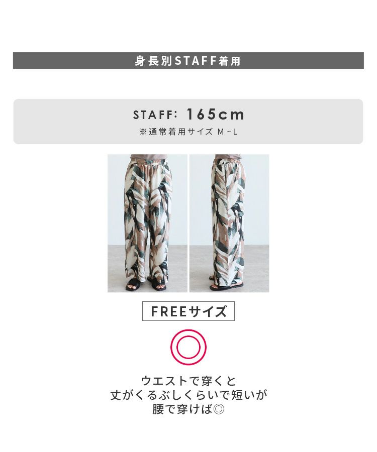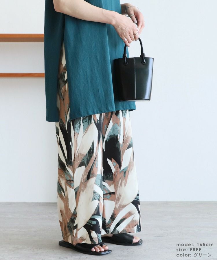 レディース ボトムス パンツ ワイドパンツ イージーパンツ 柄パンツ プリント カジュアル シンプル 楽ちん ウエストゴム ポケット 夏 大人女子 30代ファッション 30代コーデ マスタード グリーン ブルー