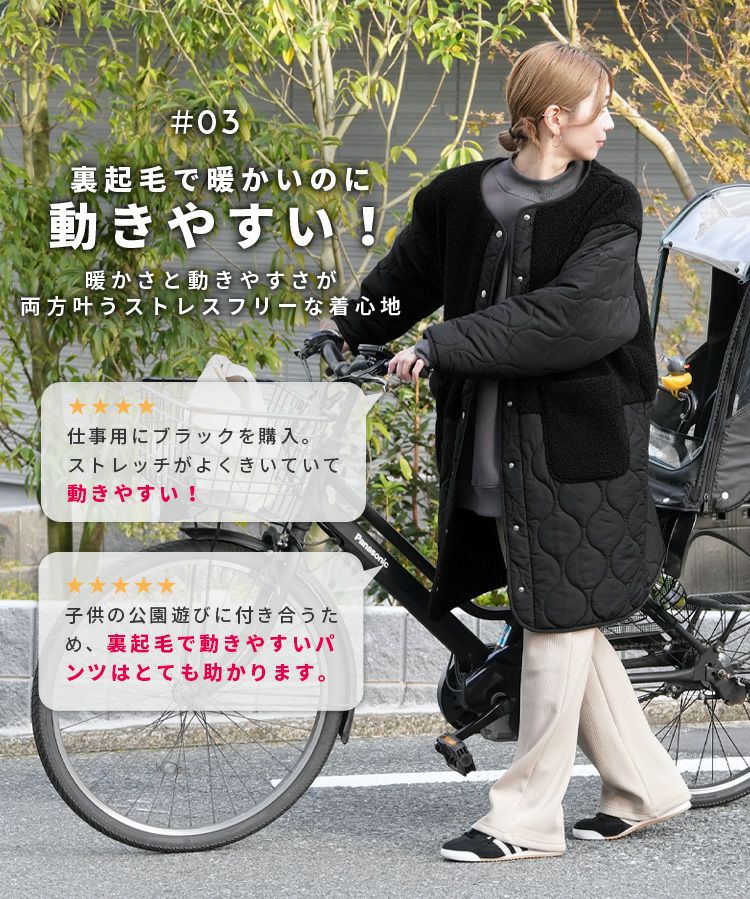 コーデアイテム: ノーカラーボア×ひょうたんキルトコート