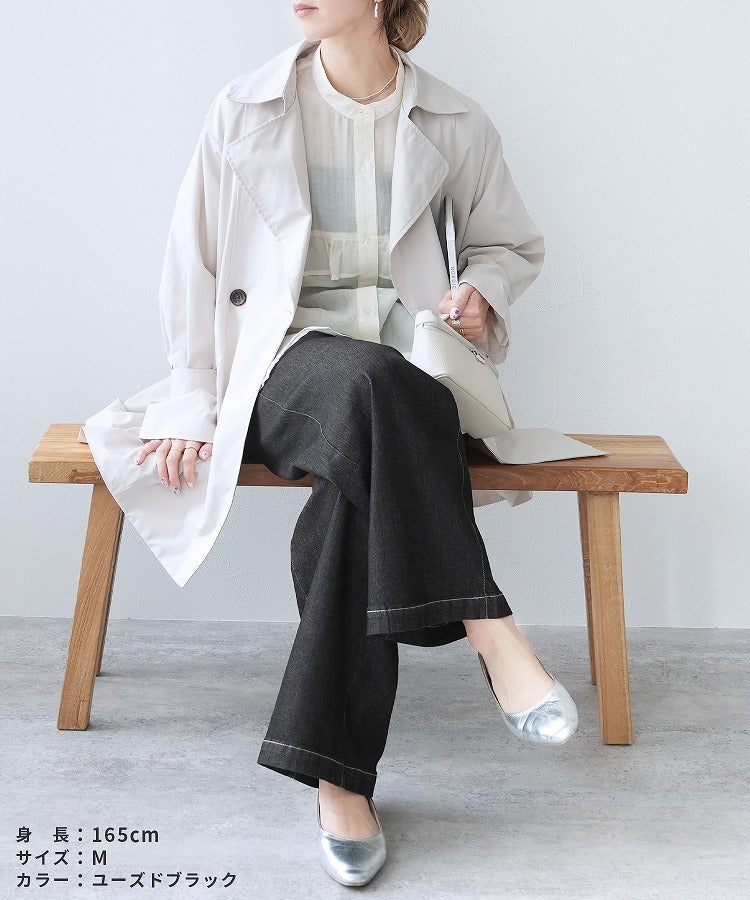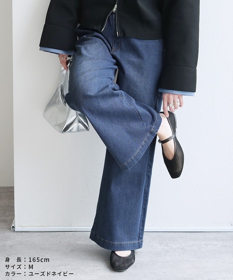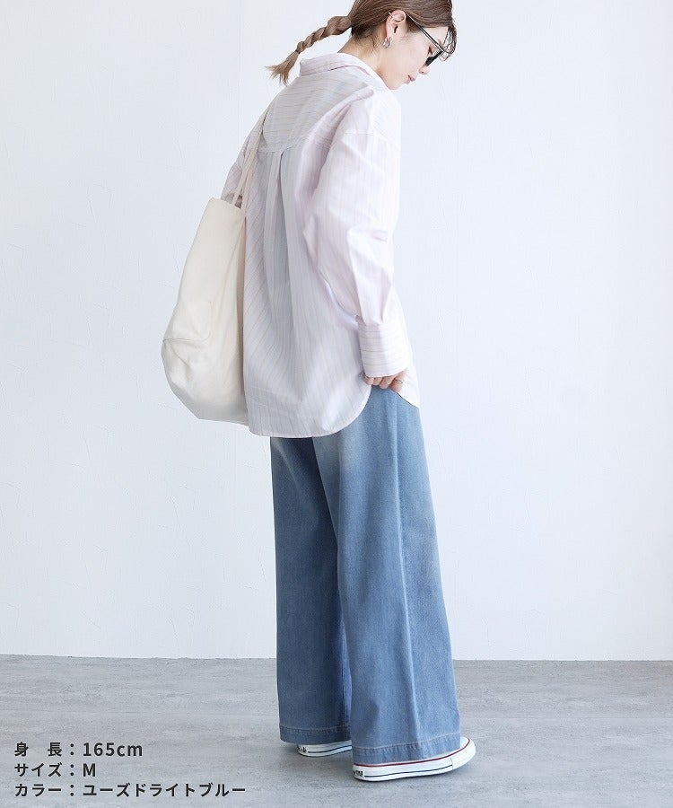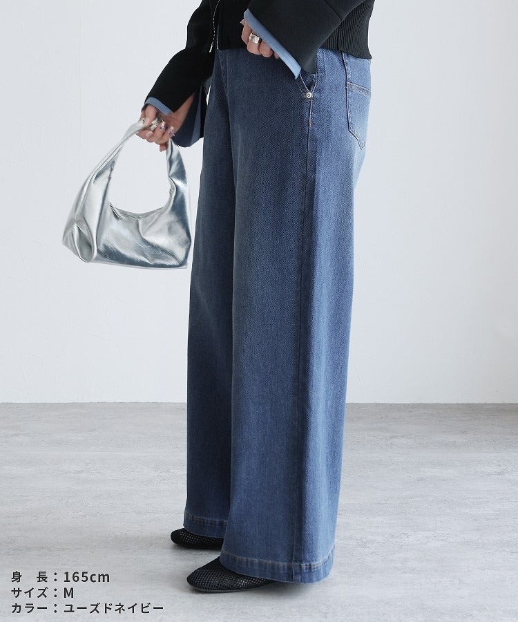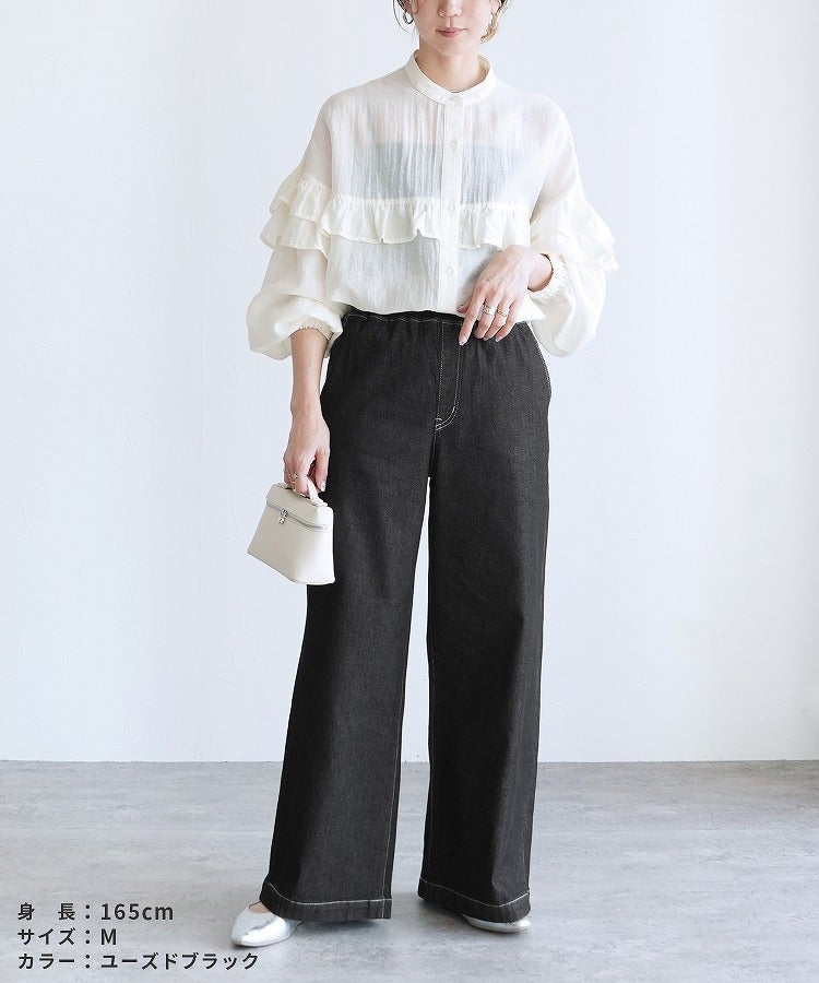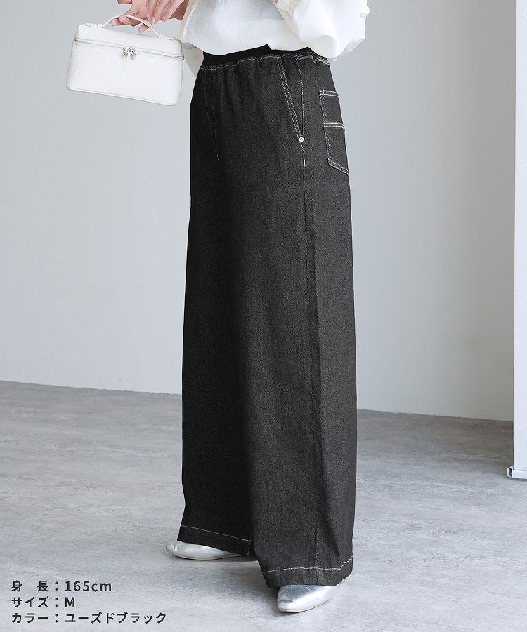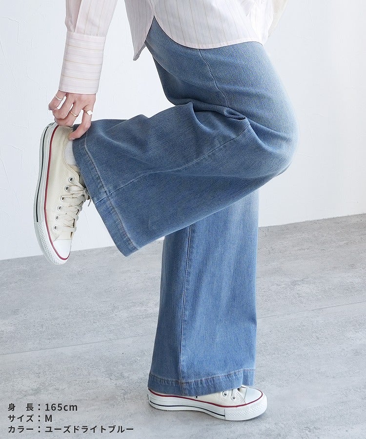 ウエストリブデニムワイドパンツ(sat-w-6353) ネコポス発送10
