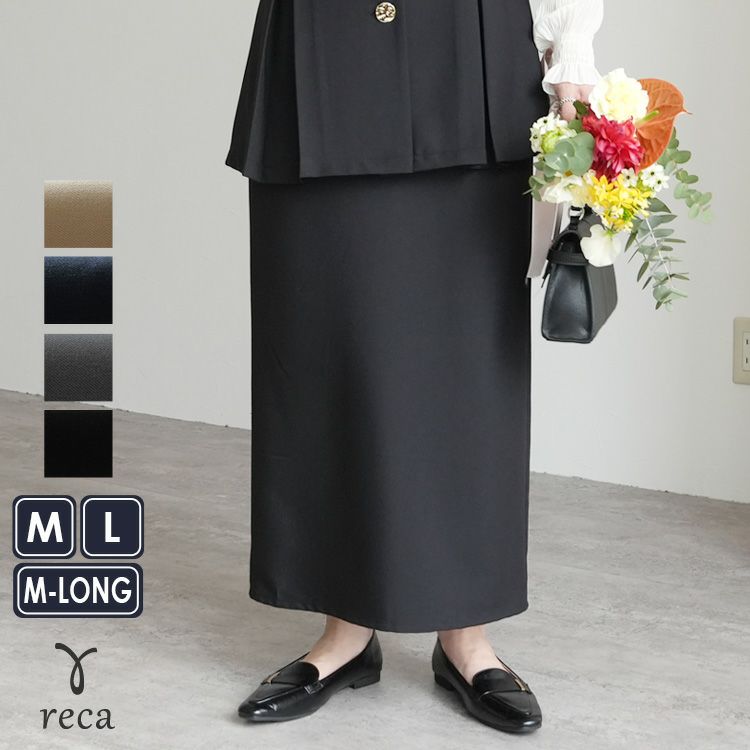 recaの洗えるオケージョンシリーズ レディース スカート ロング ウエストバックゴム シンプル カジュアル きれいめ フォーマル オフィス セレモニー オケージョン 入園式 卒業式 卒園式 大人女子 30代ファッション 30代コーデ 40代コーデ 50代コーデ ママ オシャレ 黒 ブラック ベージュ ネイビー グレー カーボングレー