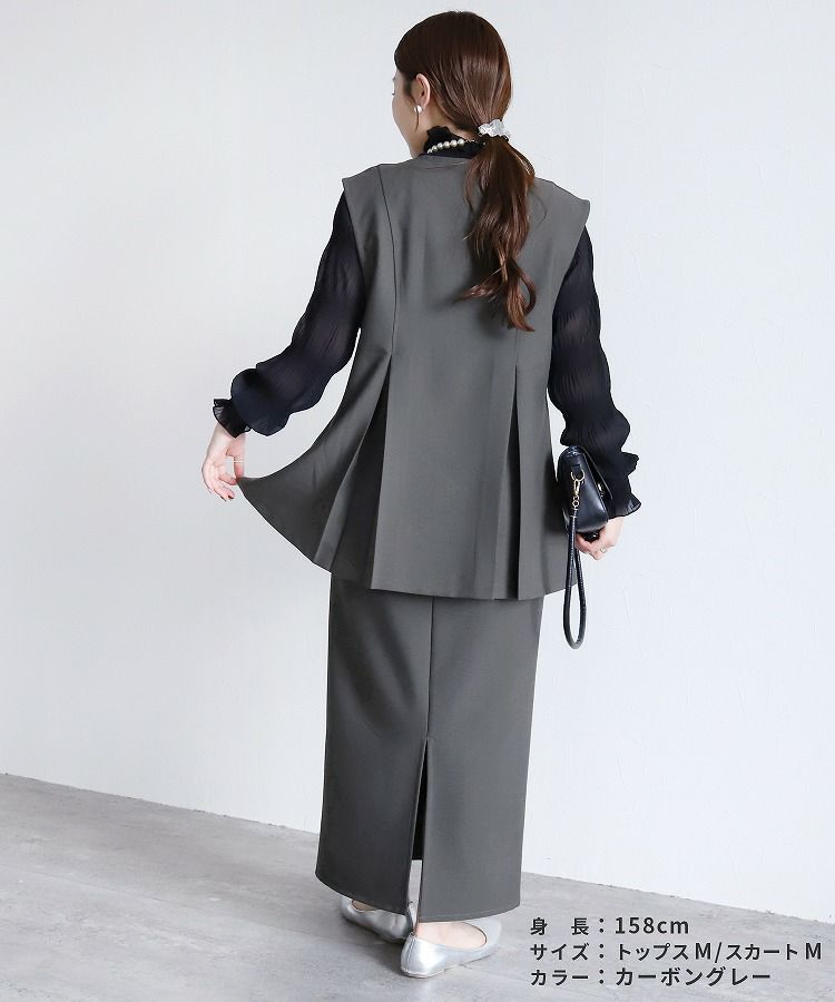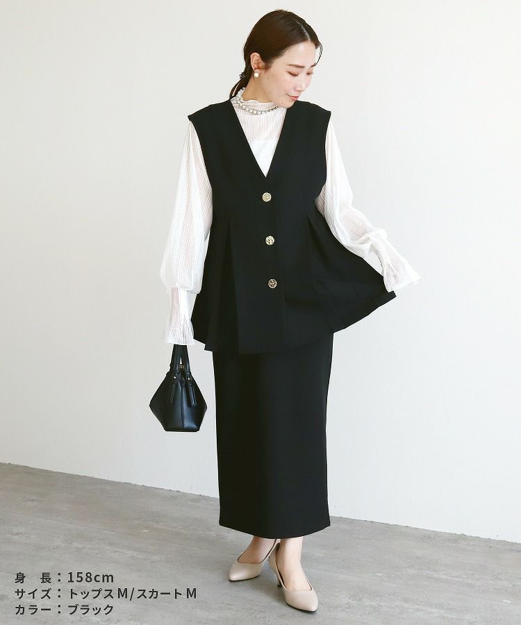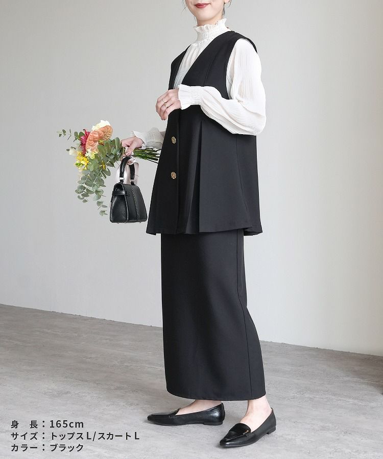 セットアップ販売: Vネックボタンベスト×Hラインロングスカート