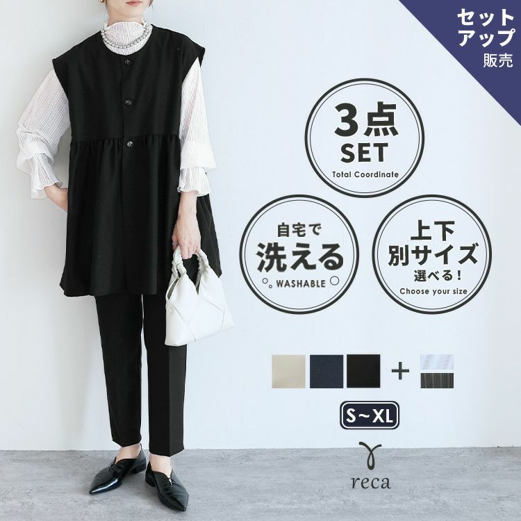 Vネックベスト×テーパードパンツ×マオカラーシャツセット(bel-hr-0617-s1) reca レカ 宅配便発送