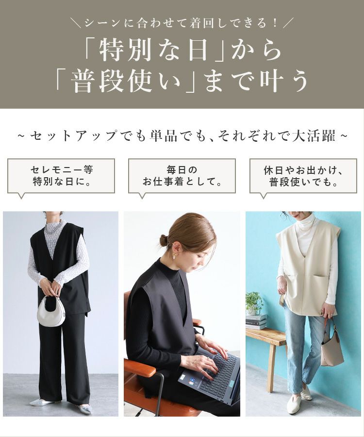 ノーカラーベスト×テーパードパンツ(bel-hr-0627-set1) 宅配便発送 ¥ 9,280 税込 販売開始前です。 販売期間 2026/01/08 12:00 〜 詳細を見る お気に入りに登録する