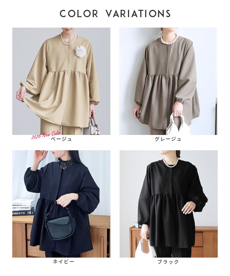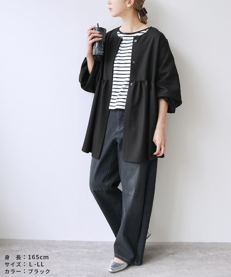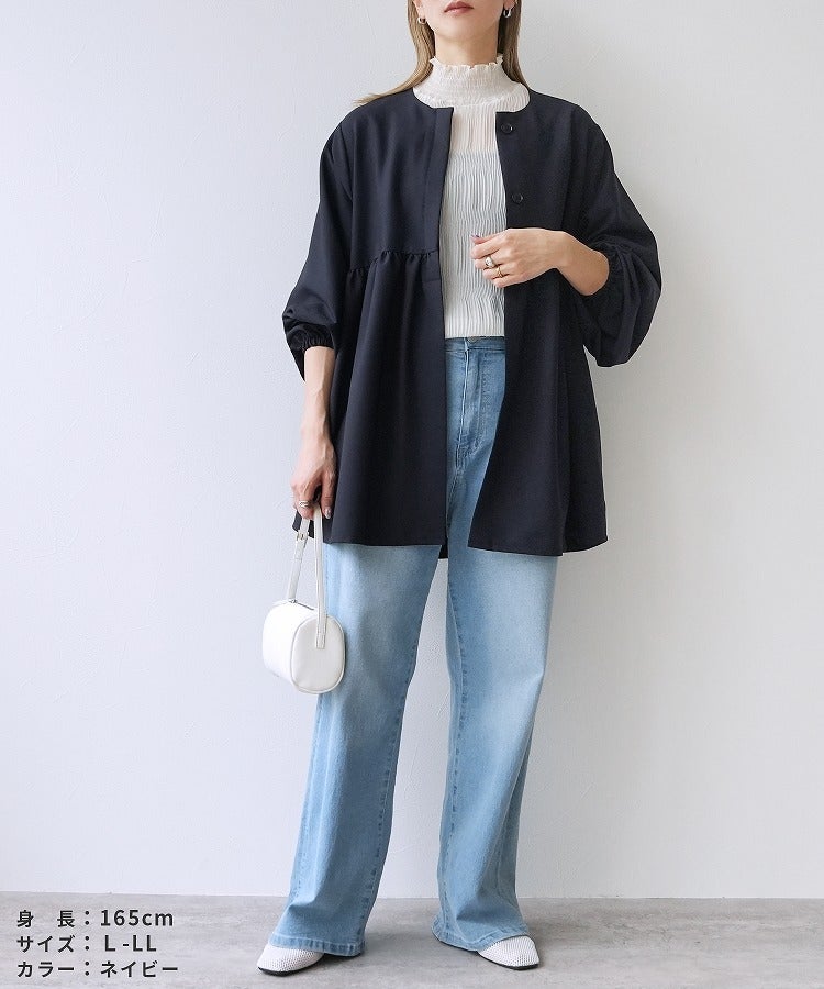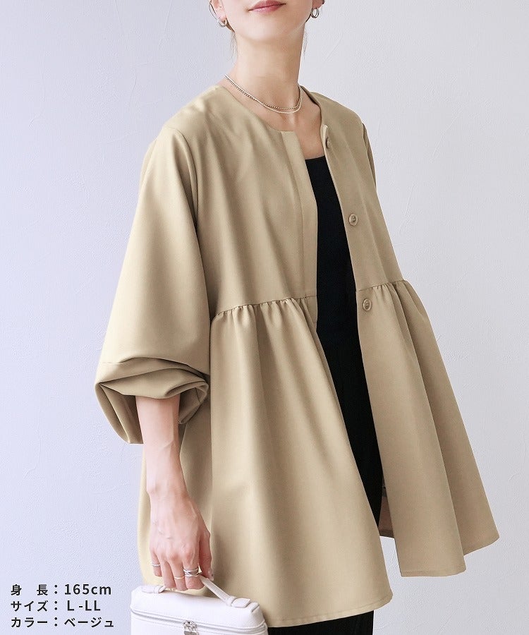 レディース ジャケット 羽織 ペプラム ボリューム袖 たぽん袖 長袖 ノーカラー クルーネック 前後2way スタイルアップ 体型カバー カジュアル シンプル きれいめ フェミニン ゆったり マタニティ フォーマル オケージョン 卒業式 入学式 卒園式 入園式 結婚式 披露宴 二次会 セレモニー セレモニースーツ セットアップ セットアップ対応 ママ 女性 楽ちん トップス 春 大人女子 30代ファッション 30代コーデ 40代ファッション 40代コーデ グレージュ グレーベージュ ネイビー 紺 ブラック 黒