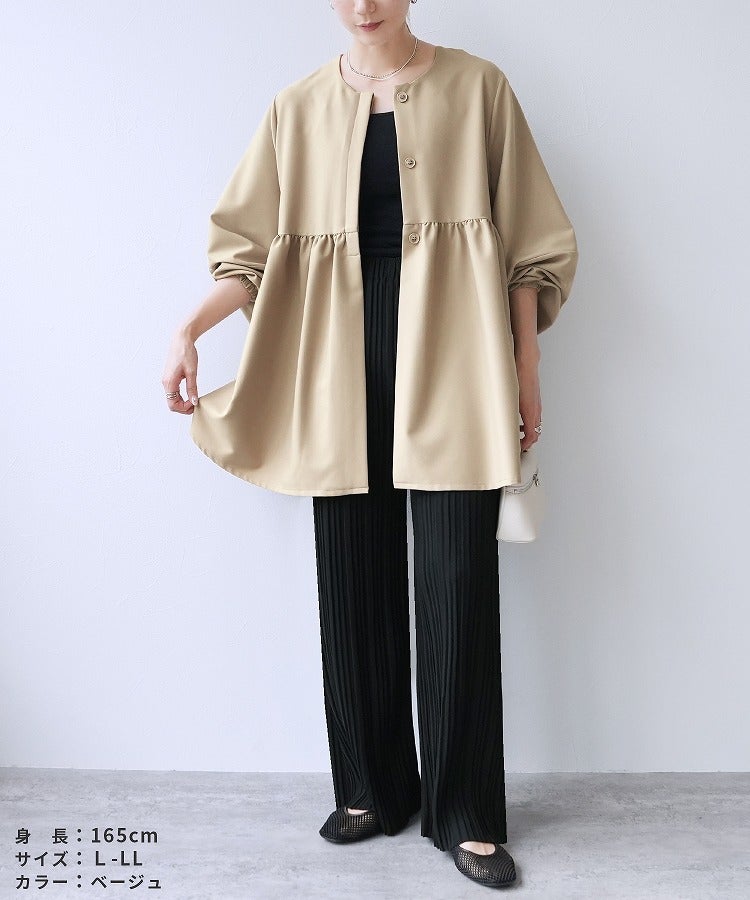 ペプラムギャザーノーカラージャケット(bel-hr-0622)  ネコポス発送10