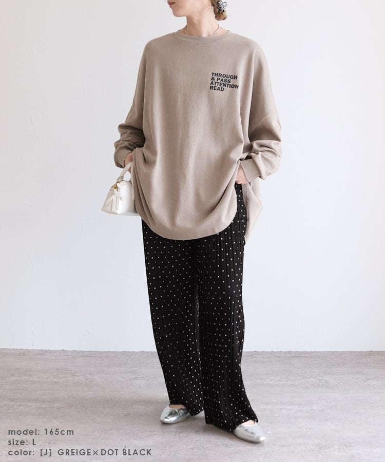 【J】グレージュ×ドット柄(ブラック)