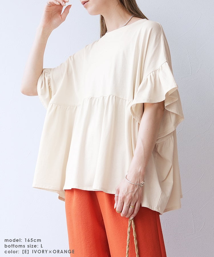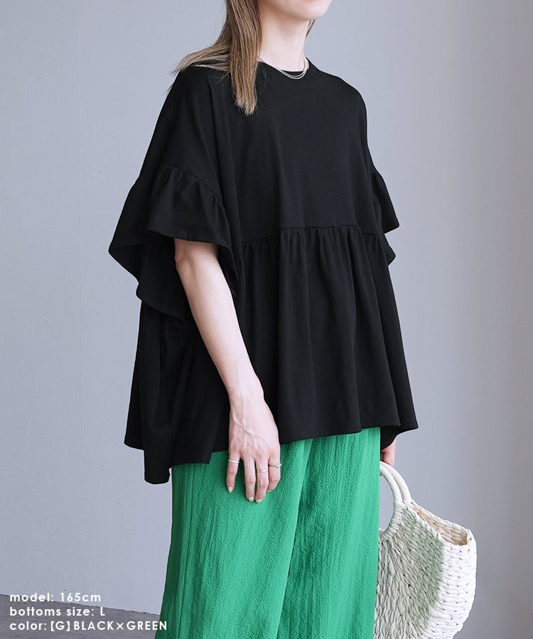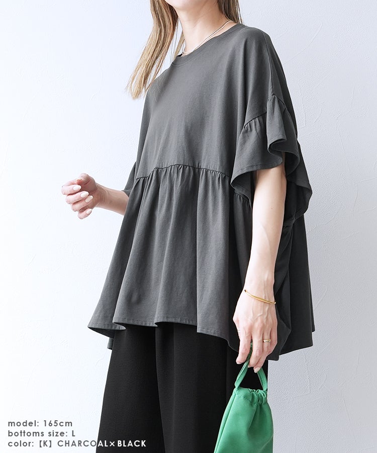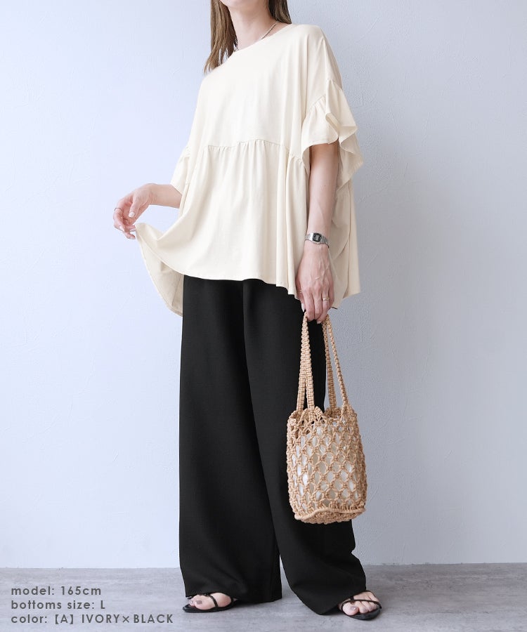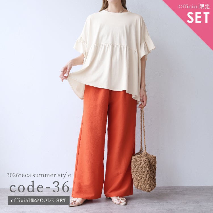 【Official限定】フリル袖ワイドカットソー×プリーツスカートセットcode-36宅配便発送(bel-bs-301/y2819)
