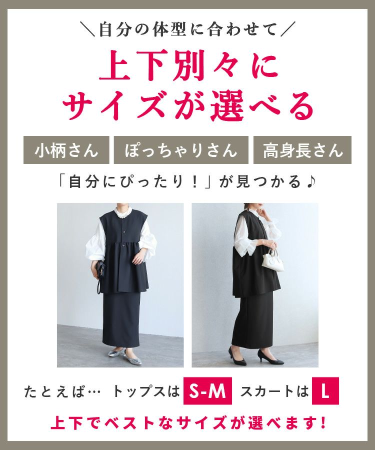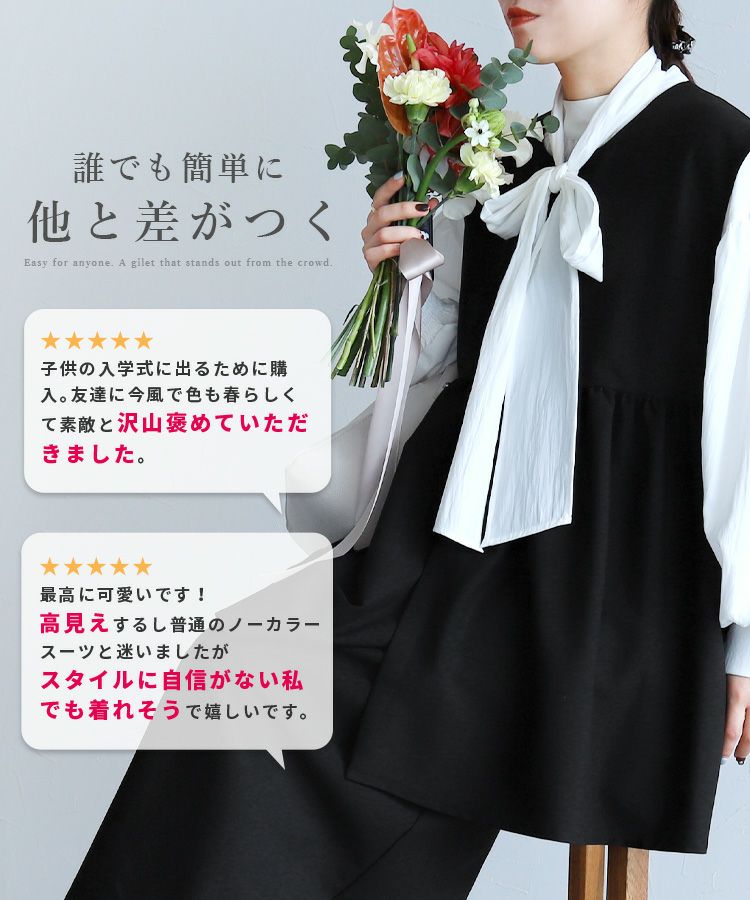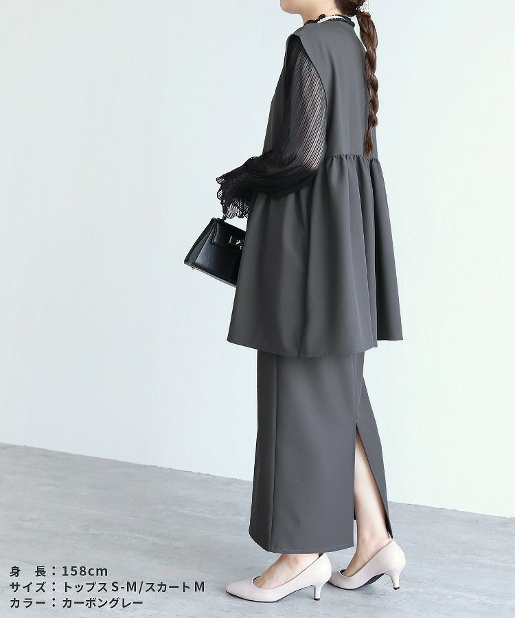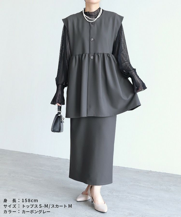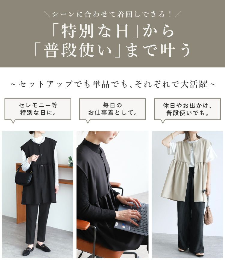 recaの洗えるオケージョンシリーズ レディース セットアップ セレモニースーツ パンツスーツ ペプラムギャザーベスト ジレ スカート ロング ウエストバックゴム 体型カバー シンプル カジュアル きれいめ フォーマル オフィス セレモニー オケージョン 入園式 卒業式 卒園式 大人女子 30代ファッション 30代コーデ 40代コーデ 50代コーデ ママ オシャレ 黒 ブラック ネイビー グレー カーボングレー
