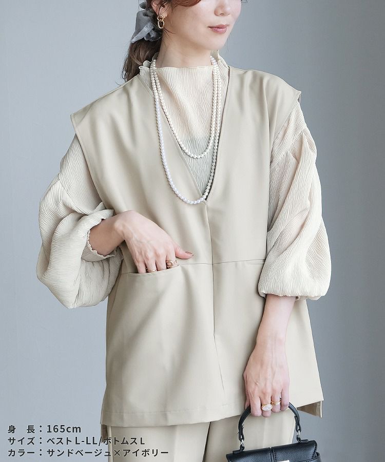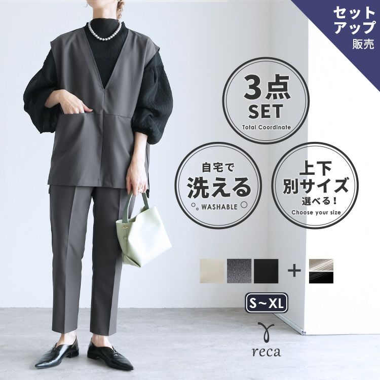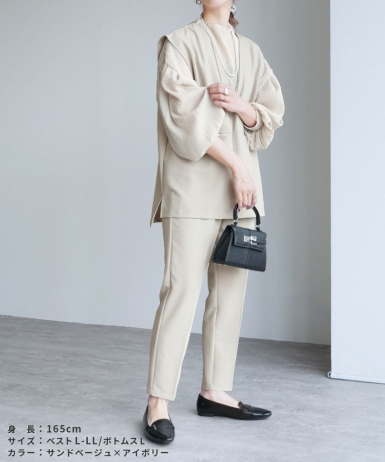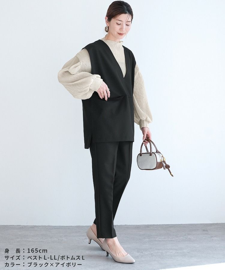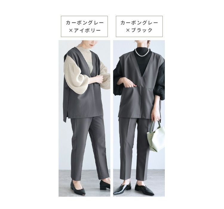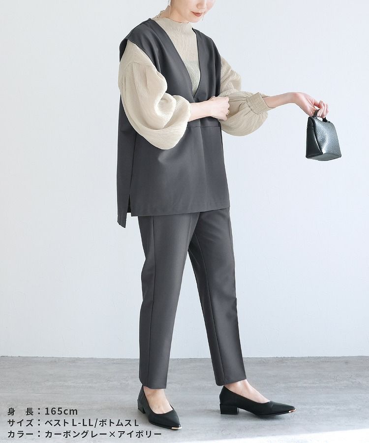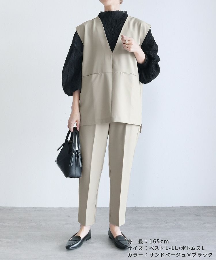 Vネックベスト×テーパードパンツ×ブラウスセット(bel-hr-0617-s2) 宅配便発送