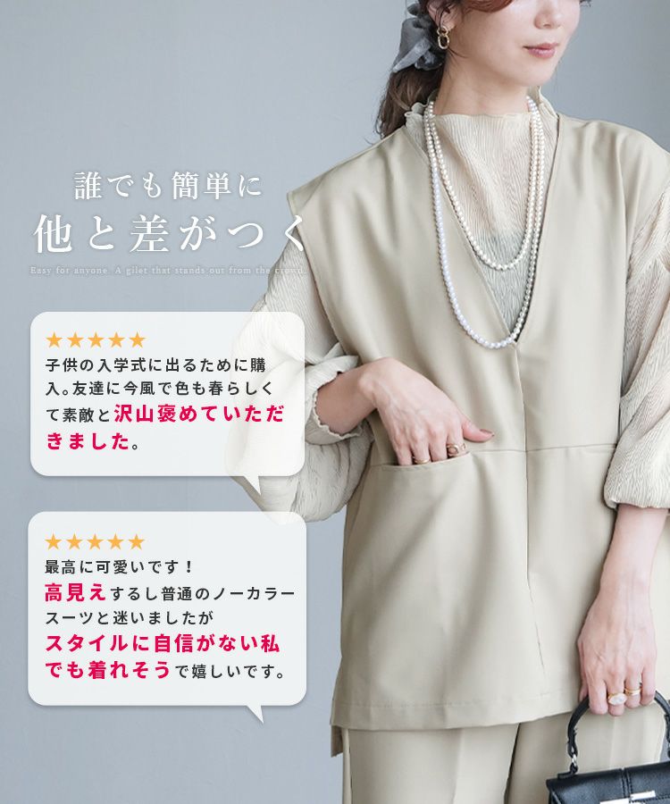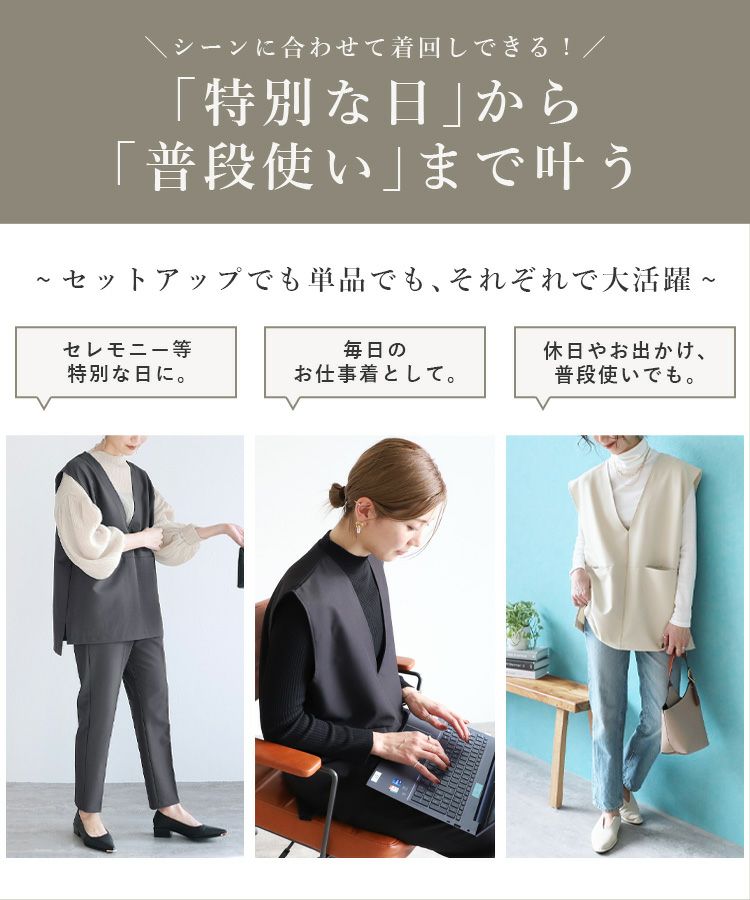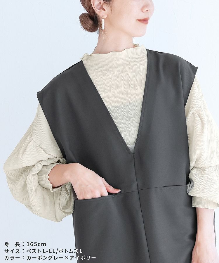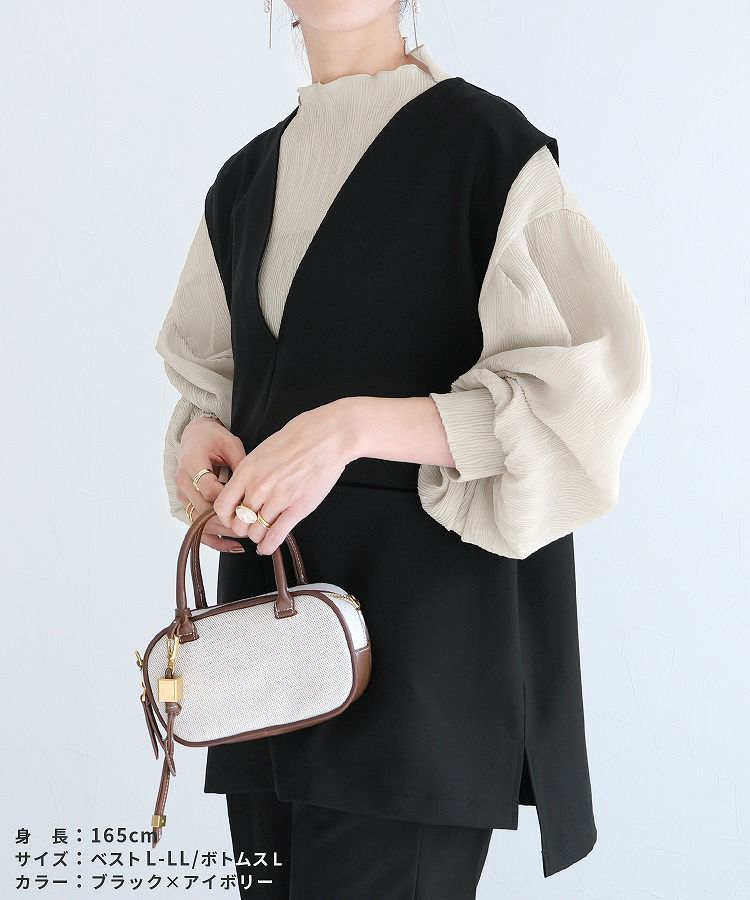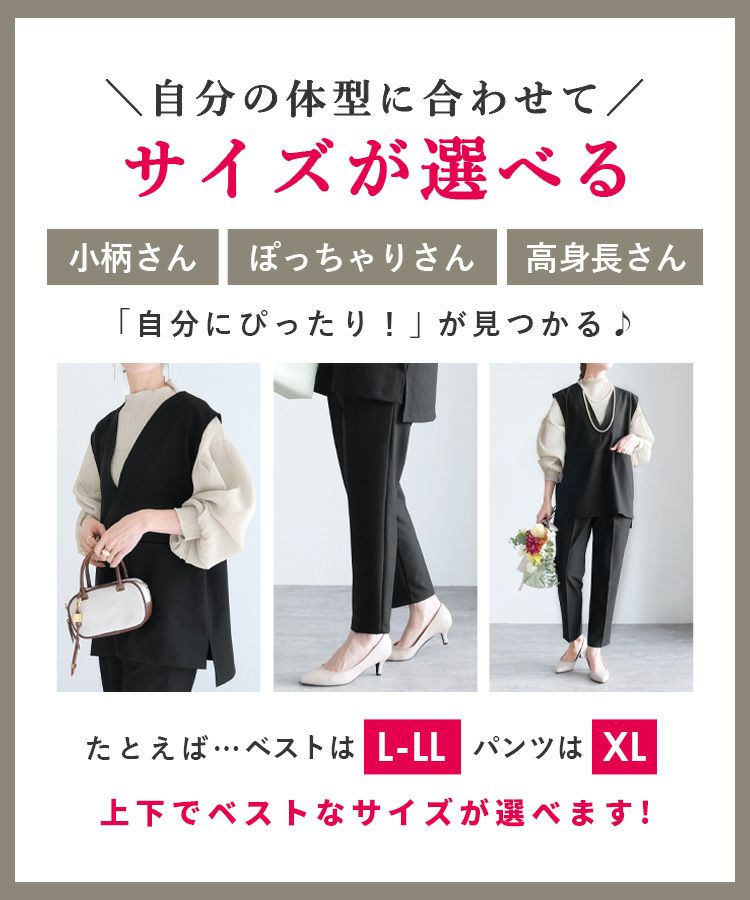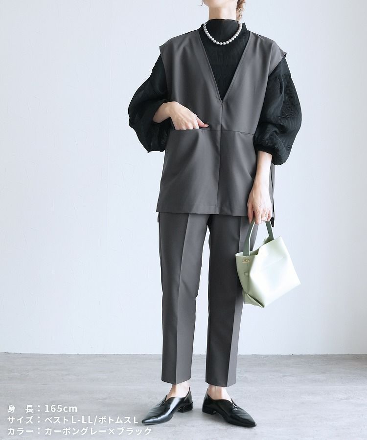 Vネックベスト×テーパードパンツ×ブラウスセット(bel-hr-0617-s2) 宅配便発送