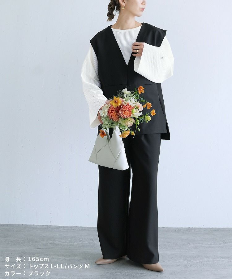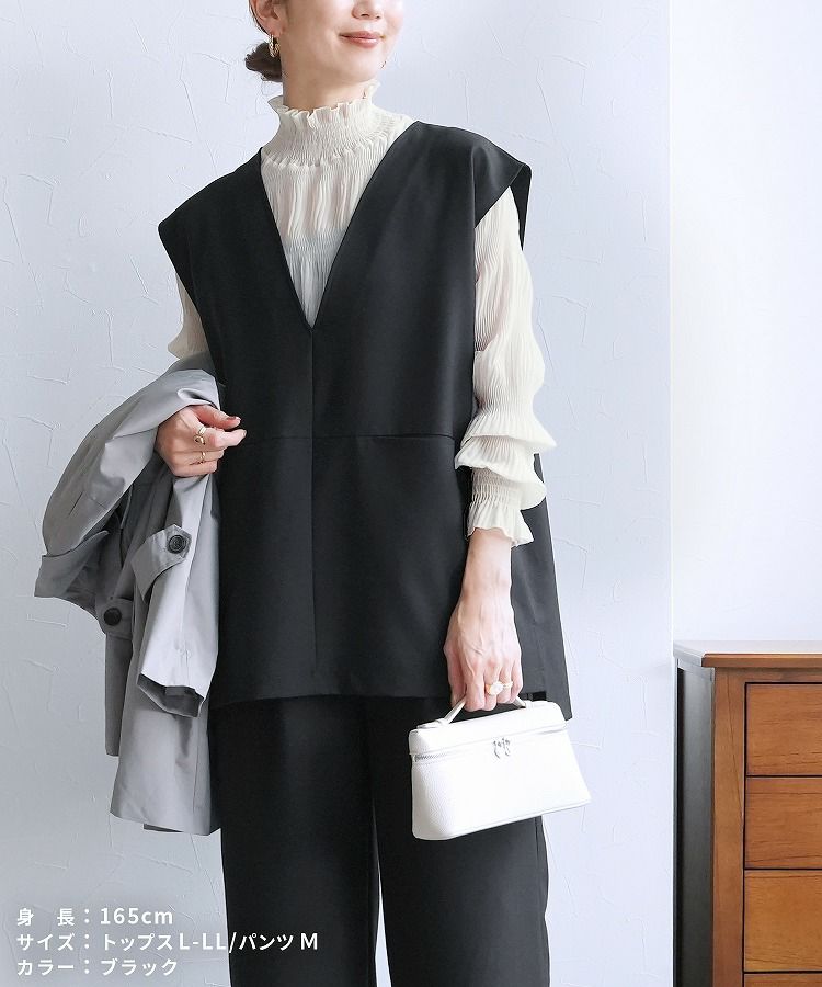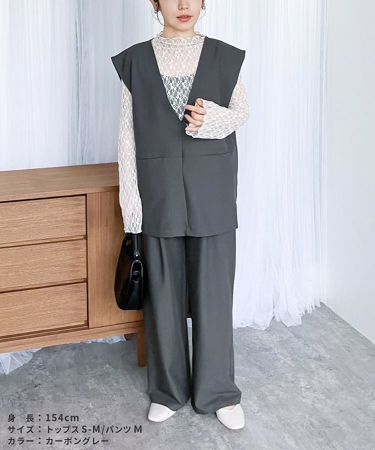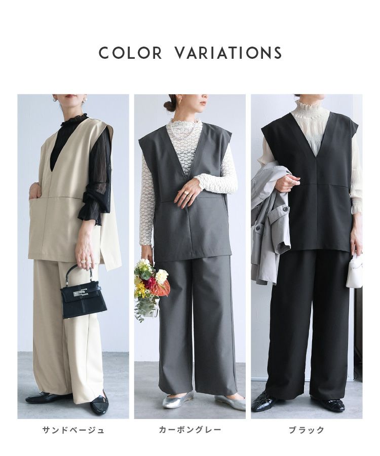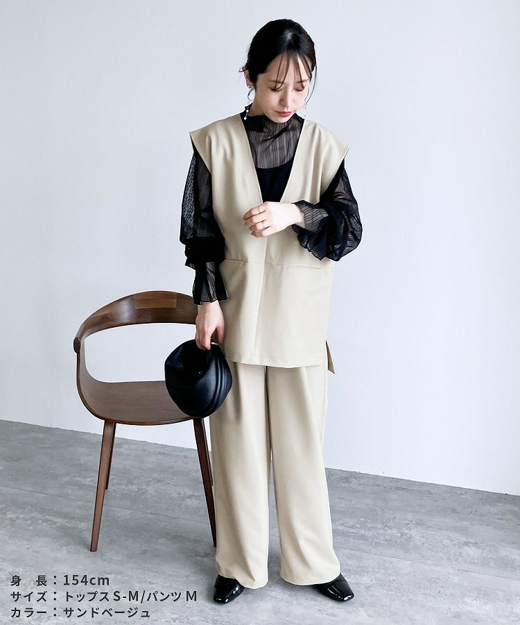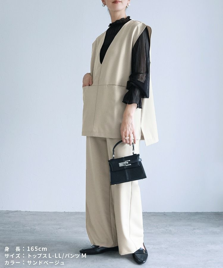 Vネックベスト×セミワイドストレートパンツ(bel-hr-0617-set3) 宅配便発送