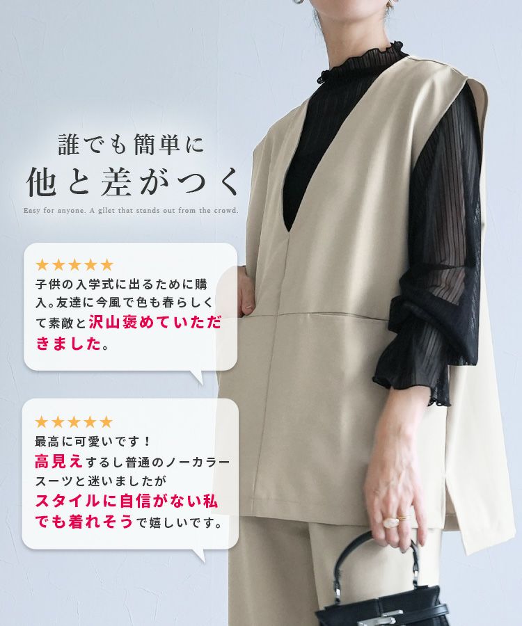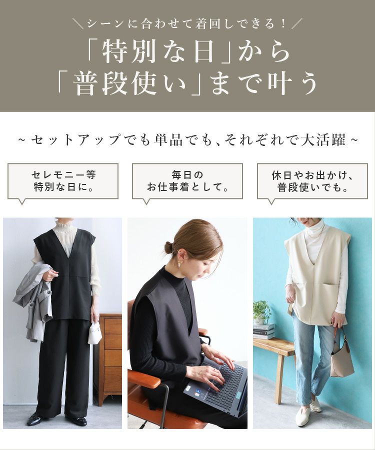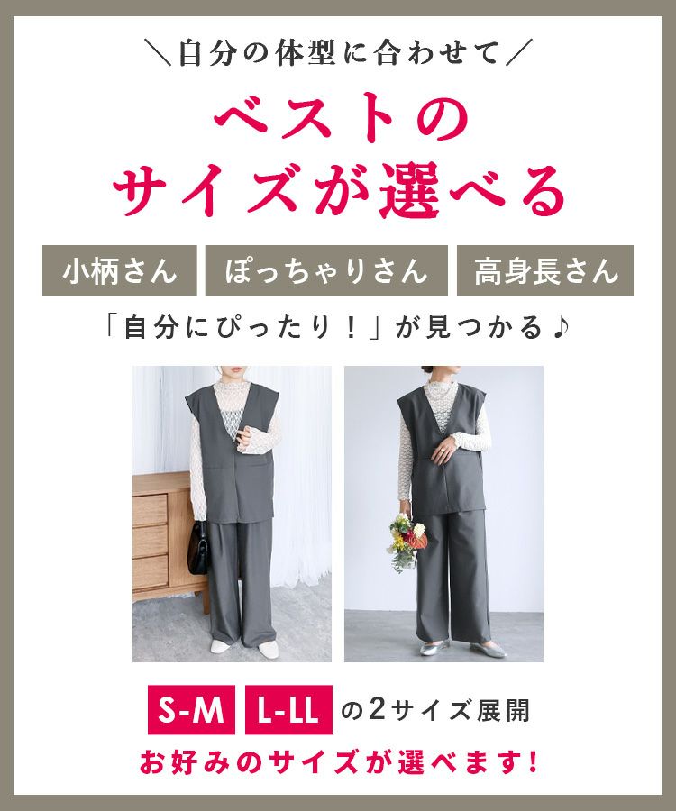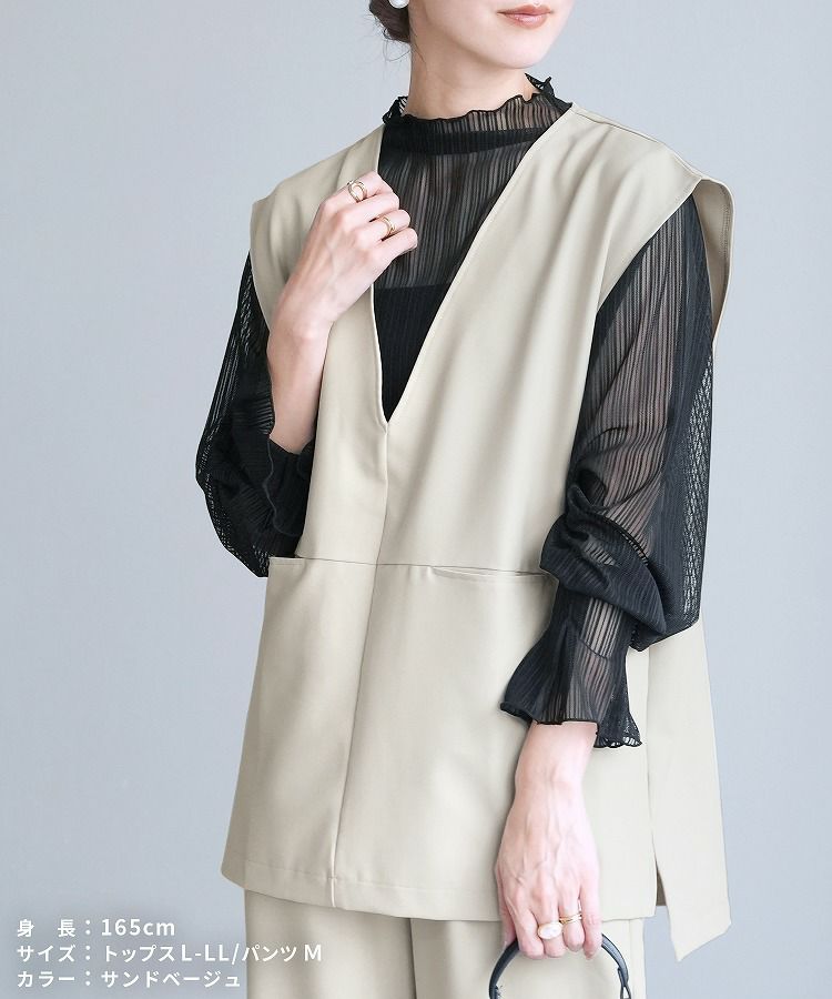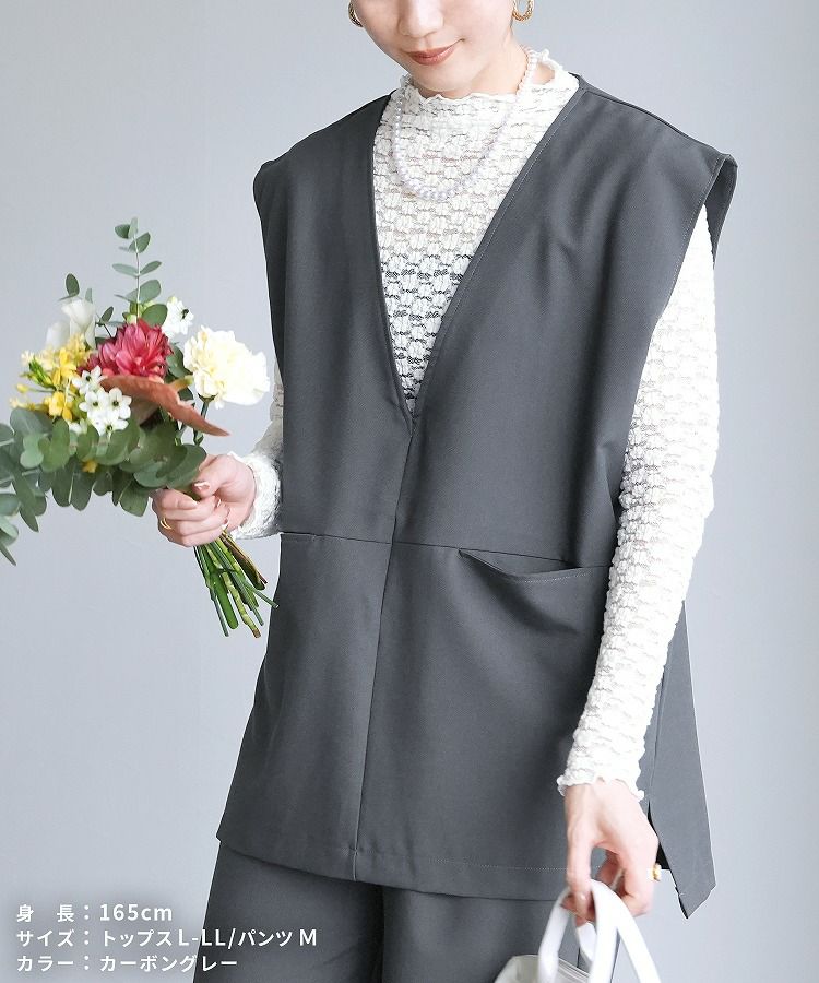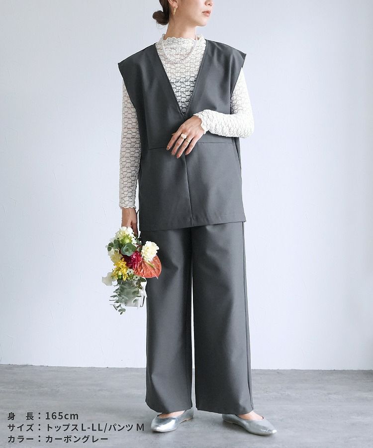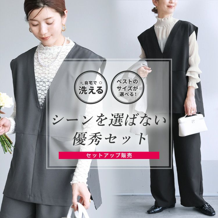 Vネックベスト×セミワイドストレートパンツ(bel-hr-0617-set3) 宅配便発送