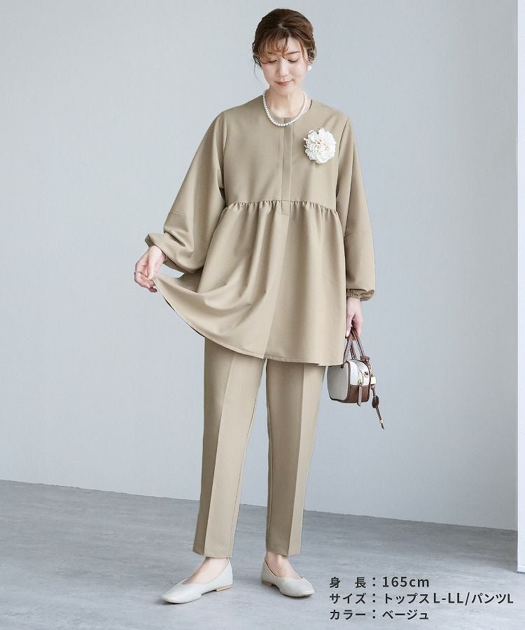 レディース セットアップ セレモニースーツ パンツスーツ ペプラムギャザーノーカラージャケット ジャケット テーパードパンツ カジュアル シンプル 楽ちん オケージョン 卒業式 入学式 卒園式 服装 母親 ママ おしゃれ 春 大人女子 30代ファッション 30代コーデ サンドベージュ カーボングレー ブラック
