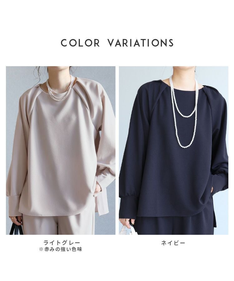 レディース 2026年春新作 セットアップ オケージョン 卒業式 入学式 卒園式 上品 キレイめ シンプル 楽ちん 体型カバー ウエストゴム ポケット 長袖 春 大人女子 30代ファッション 30代コーデ ライトグレー ネイビー