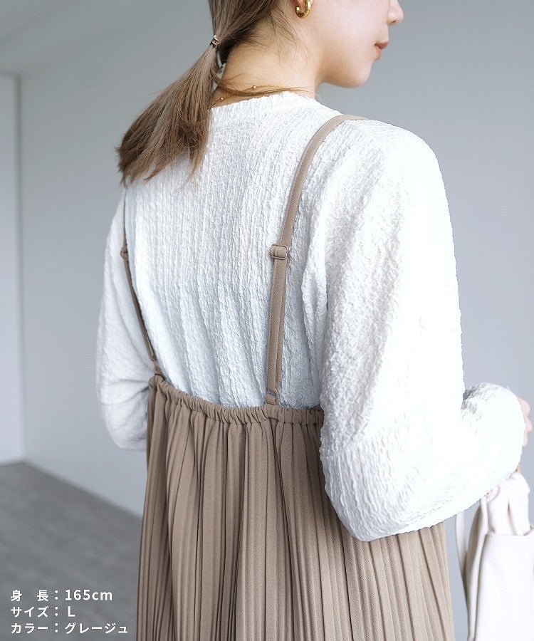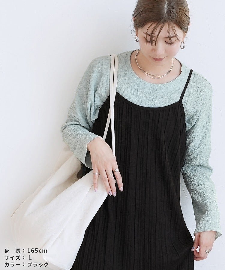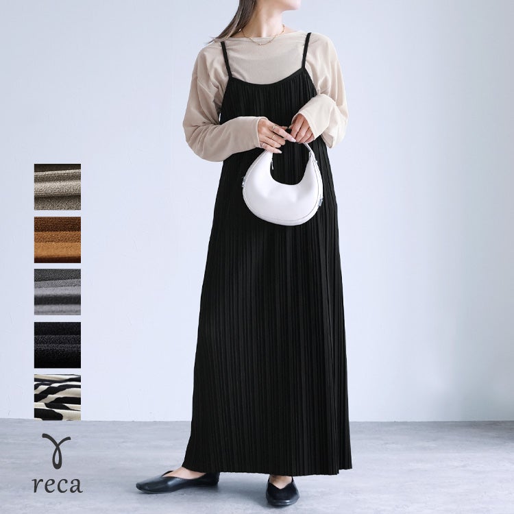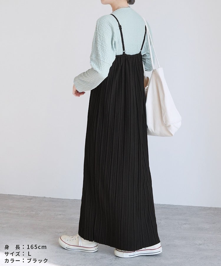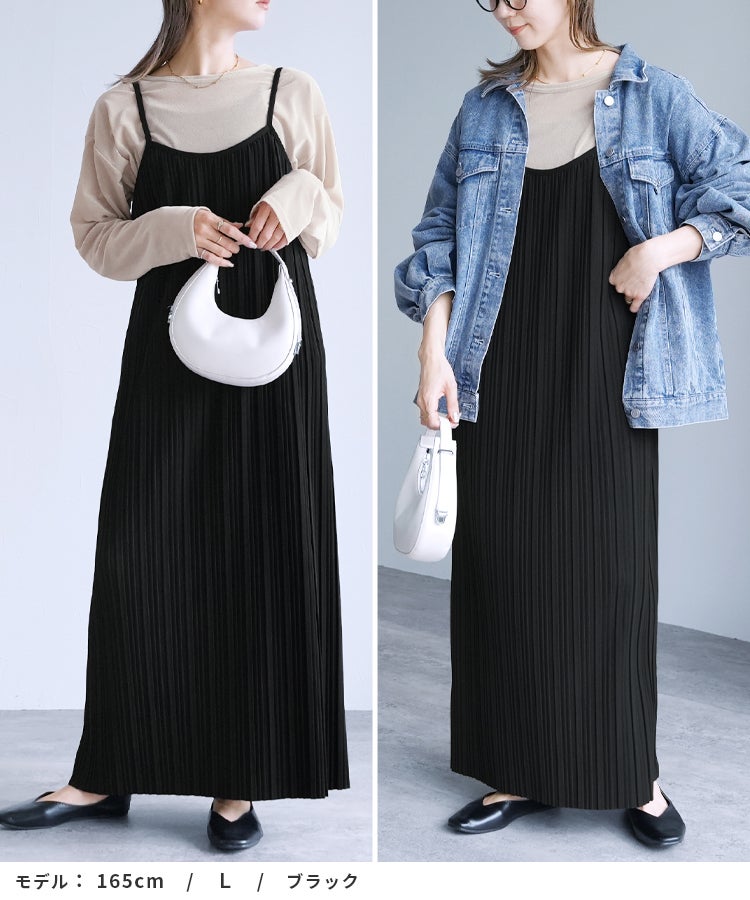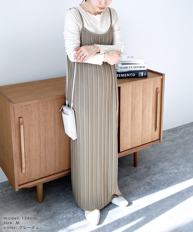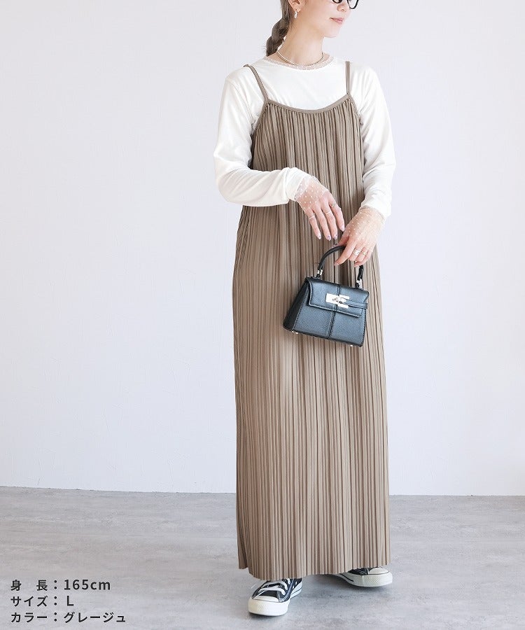 レディース ワンピース ワンピ プリーツワンピ プリーツワンピース ランダムプリーツ プリーツ プルオーバー 立体感 縦長 Iライン スタイルアップ キャミ キャミワンピ キャミワンピ―ス きれいめ カジュアル キレカジ シンプル 大人女子 30代ファッション 30代コーデ 無地 柄 ゼブラ グレージュ グレーベージュ ブラック 黒