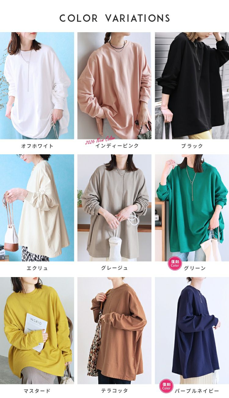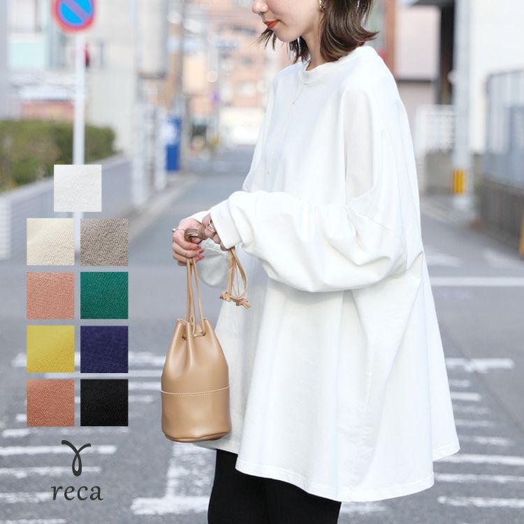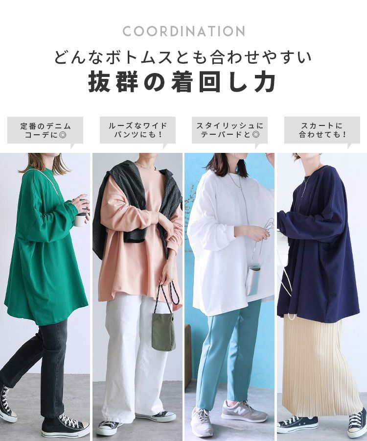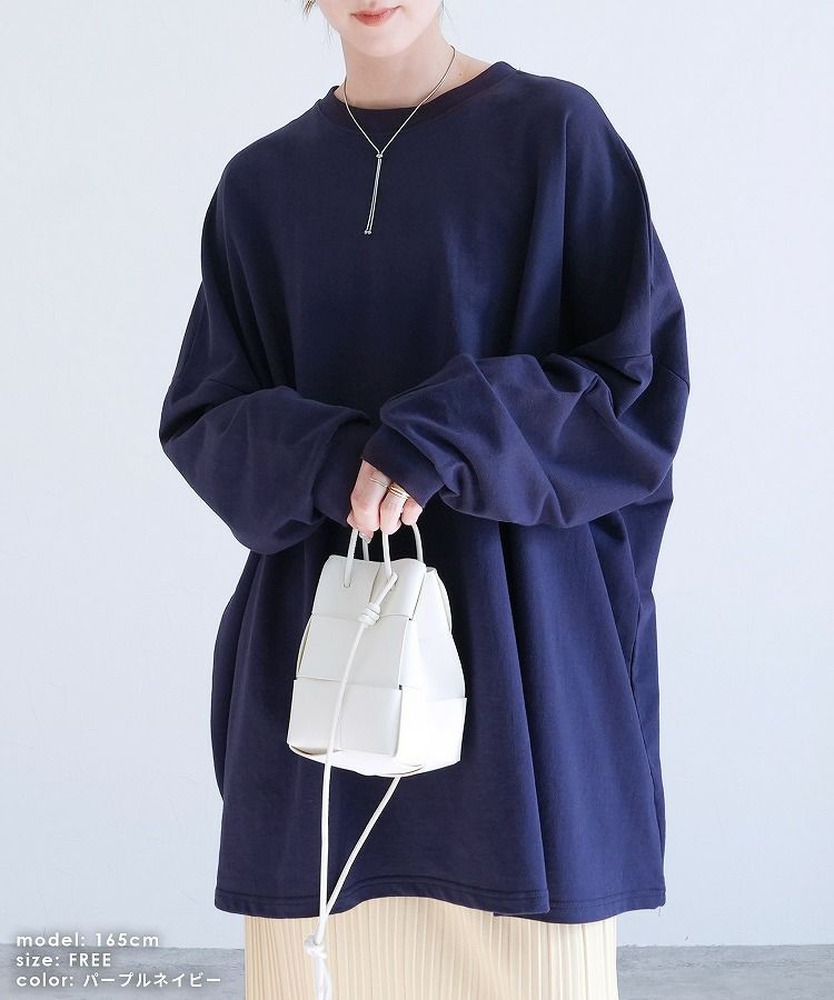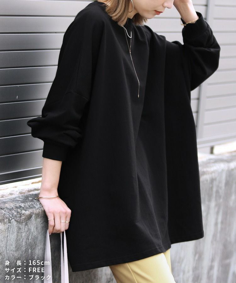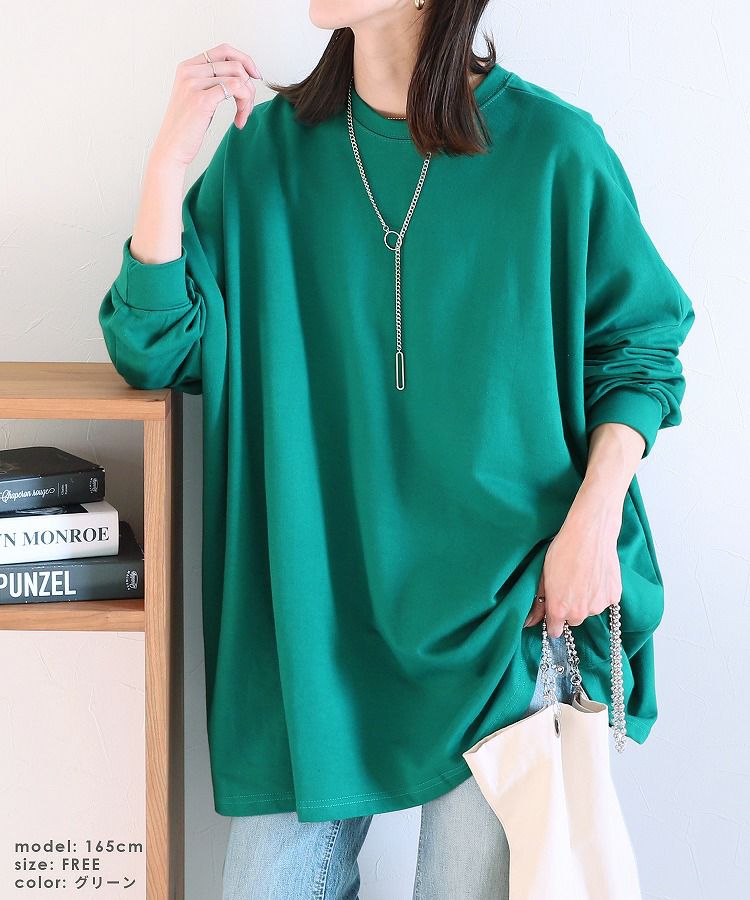 レディース トップス スウェット プルオーバー 長袖 無地 オーバーサイズ ビッグシルエット ゆったり 大きいサイズ ワイド チュニック ボリュームスリーブ ゆるシルエット 体型カバー カジュアル シンプル ベーシック 楽ちん ボリューム袖 袖コンシャス エクリュ マスタード テラコッタ ホワイト 白 ブラック 黒 ベージュ モカ