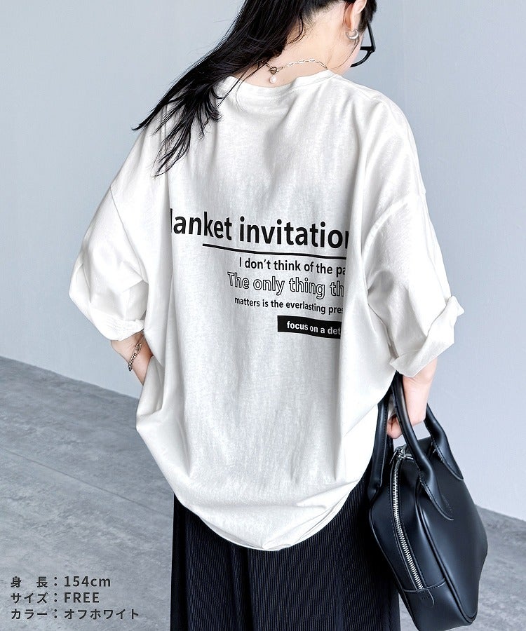前後ロゴ五分袖オーバーサイズTシャツ(bel-blc-6115) ネコポス発送10