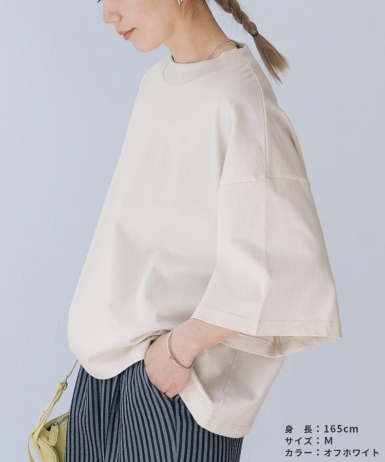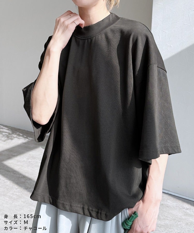 モックネック五分袖カットソー(bel-bs-214) ネコポス発送10