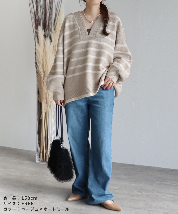 ディープVネックボーダーニット(bel-eb-5096) 宅配便発送