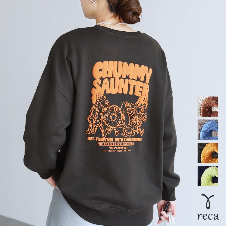 レディース トップス スウェット トレーナー プルオーバー オーバーサイズ メンズライク ロゴ ロゴ刺繍 ロゴスウェット ロゴT 発泡プリント キャラクター 前後ロゴ ワンポイント 長袖 クルーネック 丸首 カジュアル シンプル 大人女子 30代ファッション 30代コーデ プリント 配色 バイカラー オートミール エクリュ ホワイト 白 チャコール グレー ブルー オレンジ レッド ライトイエロー グリーン