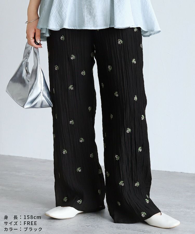 小花柄刺繍シアーワイドパンツ(day345430) ネコポス発送10