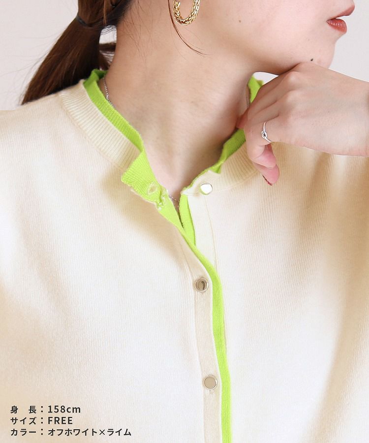 レディース シンプル カジュアル オフィス 通勤 羽織 差し色 配色 レイヤード風 薄手 着回し オシャレ 春 夏 大人かわいい 30代ファッション 30代コーデ 40代コーデ ママ ママコーデ 母 オフホワイト アイボリー ライムイエロー ベージュ オレンジ グレー ブルー