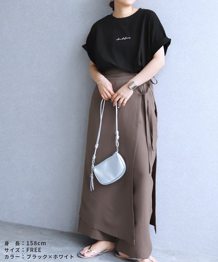 コーデアイテム: エンボス加工巻きスカート付きワイドパンツ