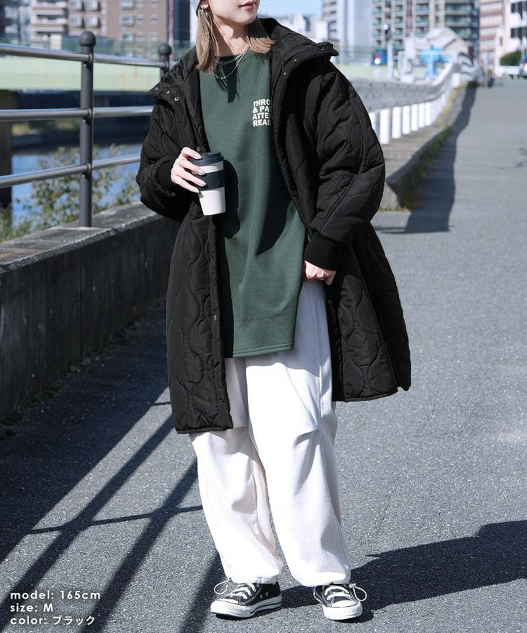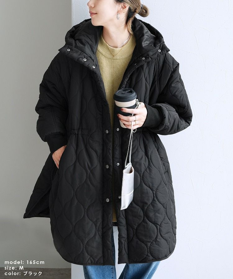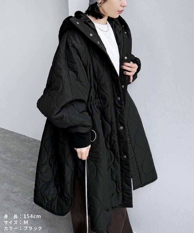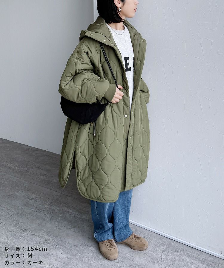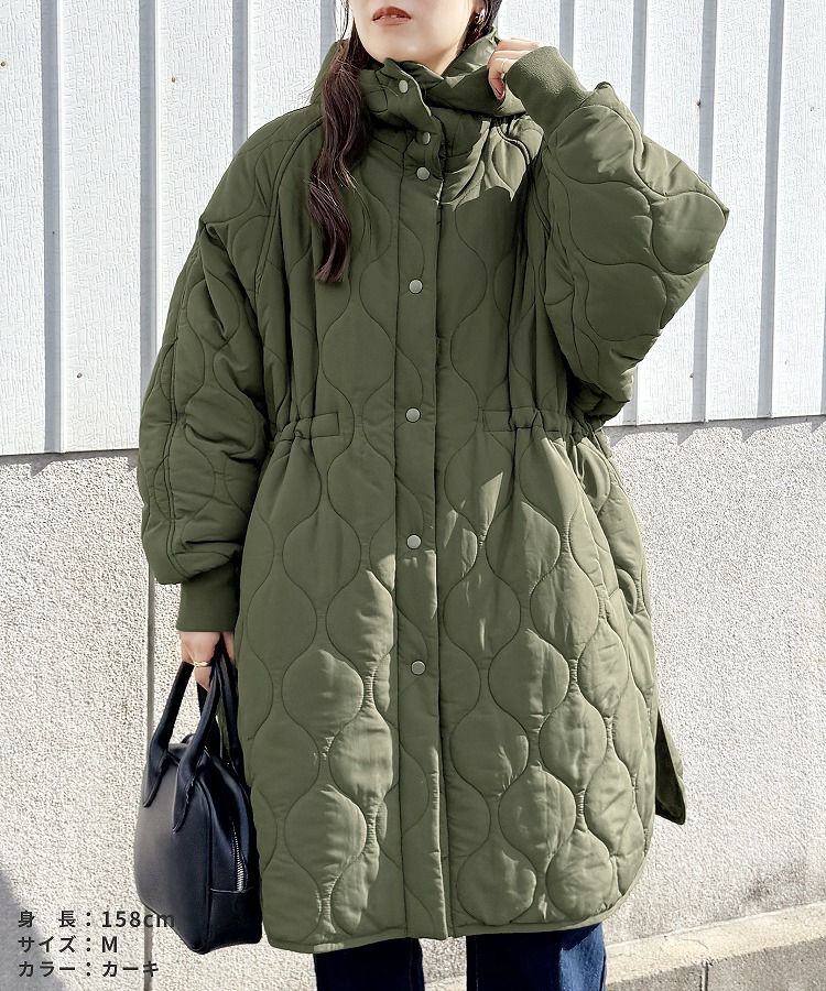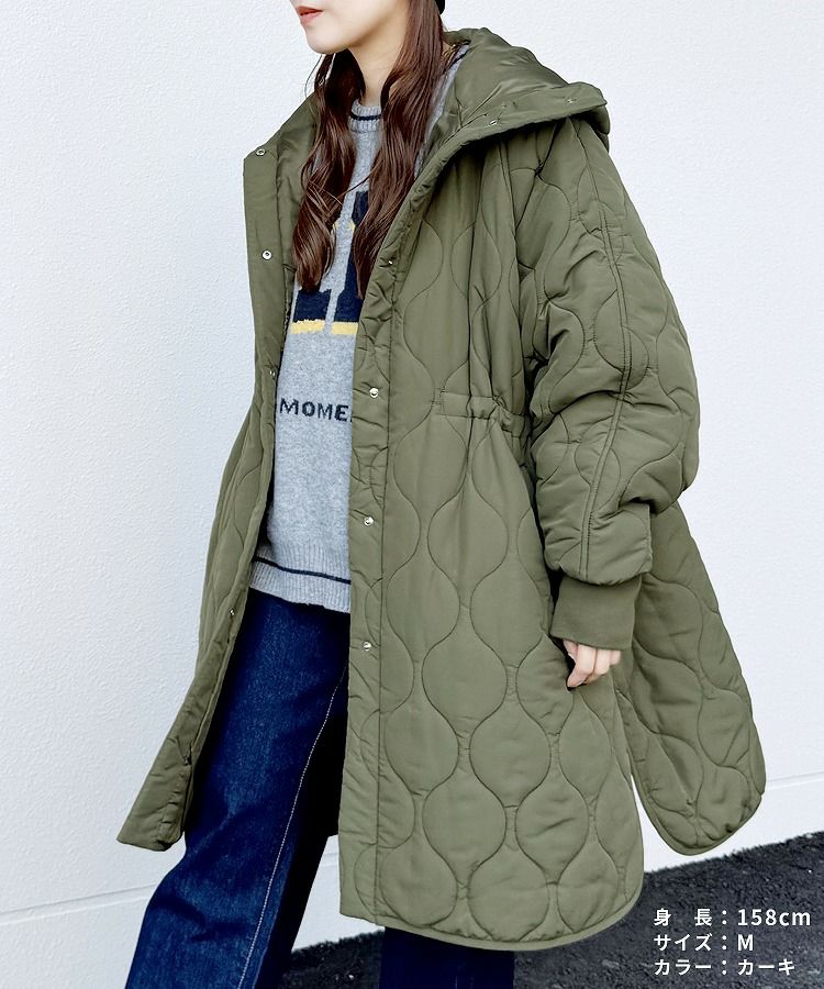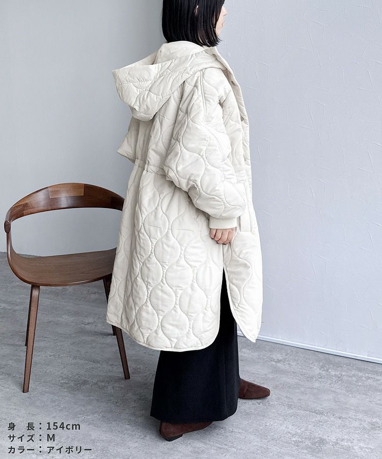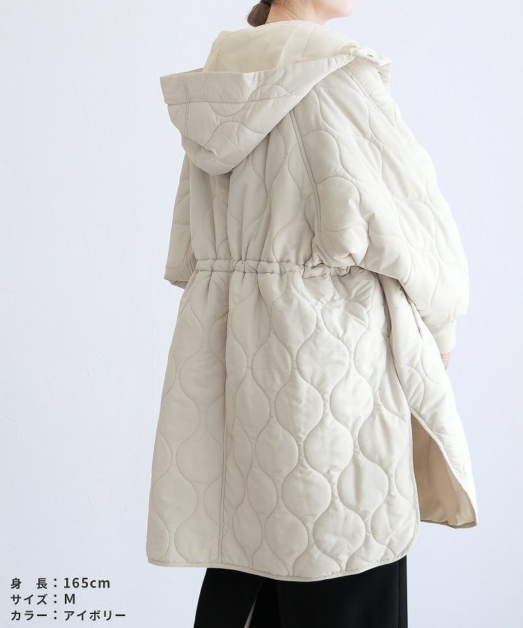 レディース アウター コート ジャケット ジャンパー ジャンバー ロングコート ロング丈 ロング 丈長め 長め 長い 膝上 ひざ上 膝丈 ひざ丈 ハイネック フード付き ライトアウター 長袖 長そで 十分袖 十分そで 10分袖 キルティングアウター キルティングコート キルティングジャケット キルトアウター キルトコート キルトジャケット キルティング キルト ひょうたん柄 ひょうたんキルト ドロスト ウエストドロスト 楽ちん 楽チン カジュアル ナチュラル おしゃれ オシャレ 可愛い かわいい きれいめ キレイめ 大人 オトナ 上品 シンプル ベーシック 自転車 保育園 幼稚園 送り迎え 送迎 お見送り ママファッション ママコート オフィススタイル オフィスカジュアル オフィス 会社 職場 職場着 仕事着 仕事 通勤 ol OL 通学 学校 学生 高校 高校生 大学 大学生 20代 30代 40代 50代 60代 カーキ ブラック 黒 アイボリー オフホワイト 白