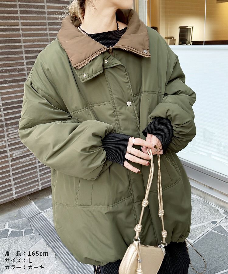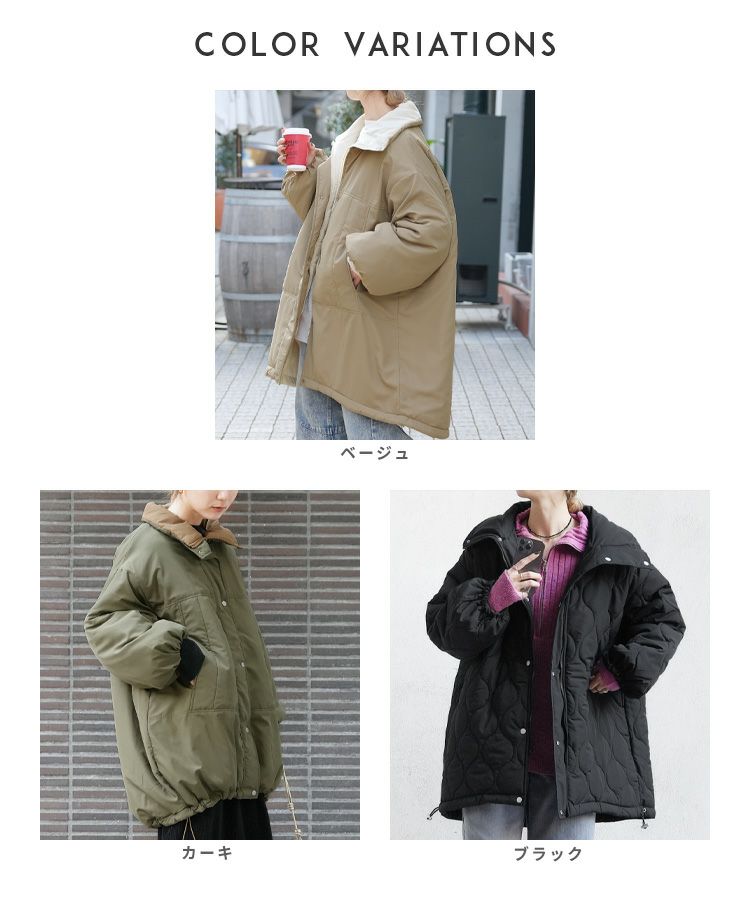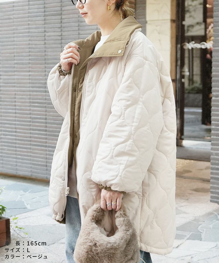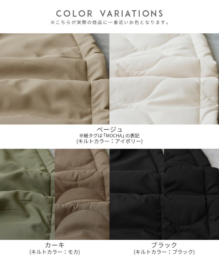 レディース アウター キルティング キルティングコート キルティングジャケット ひょうたん柄 ブルゾン ジャケット ロングコート スタンドカラー 防寒 長袖 カジュアル シンプル 大人女子 30代ファッション 30代コーデ 40代ファッション 40代コーデ バイカラー 配色 カーキ ベージュ ブラック 黒