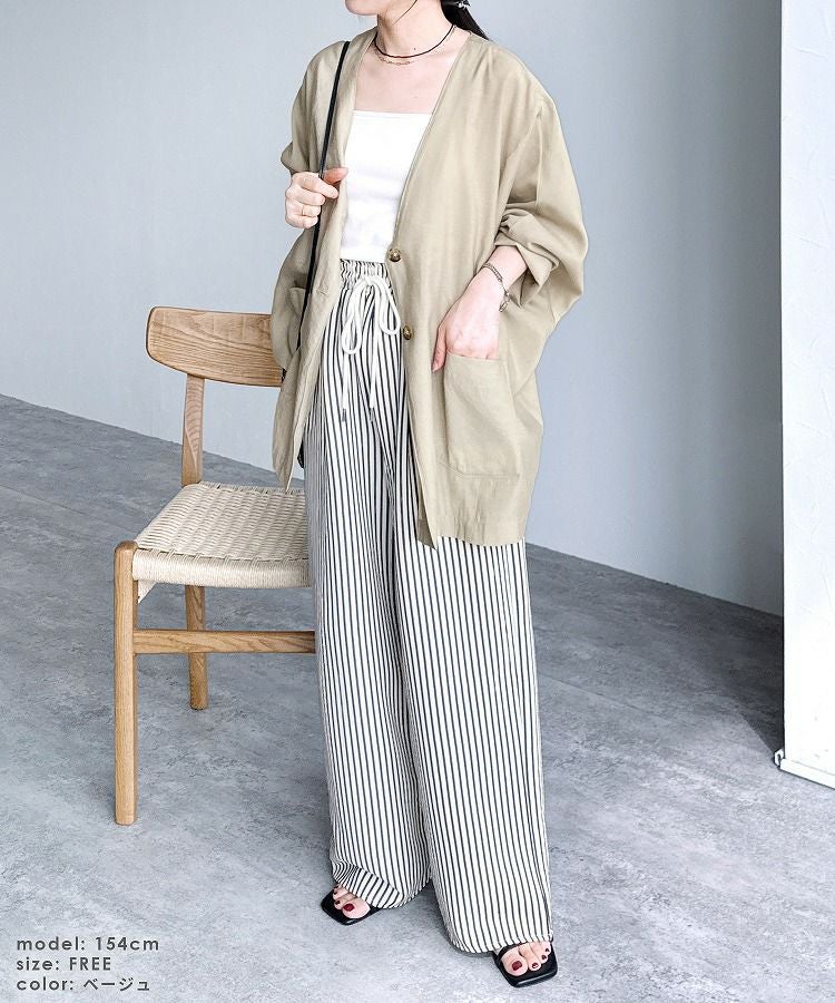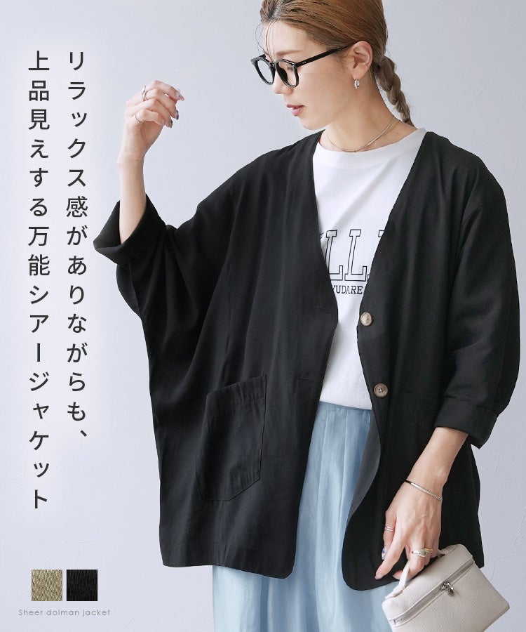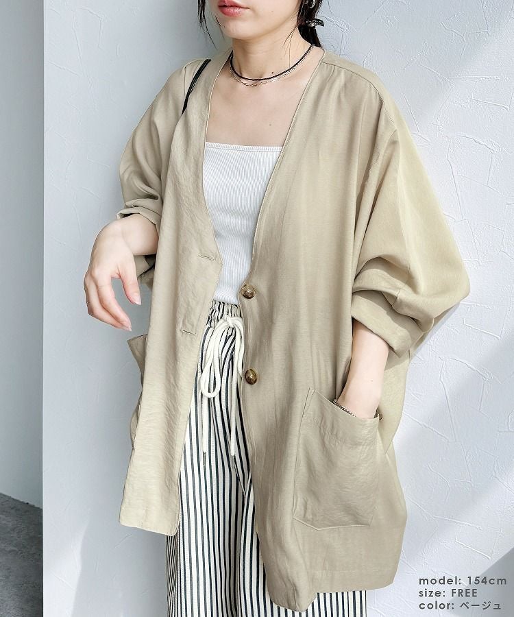 レディース アウター ジャケット Vネック ノーカラー ダブルボタン ポケット付き ボタン 前開き 羽織 スリット レイヤード 体型カバー シアー 透け感 抜け感 抜け 長袖 スリット ポケット付き ポケット きれいめ カジュアル キレカジ オフィス 通勤服 シンプル 大人女子 30代ファッション 30代コーデ 無地 ライトベージュ ベージュ ブラック 黒