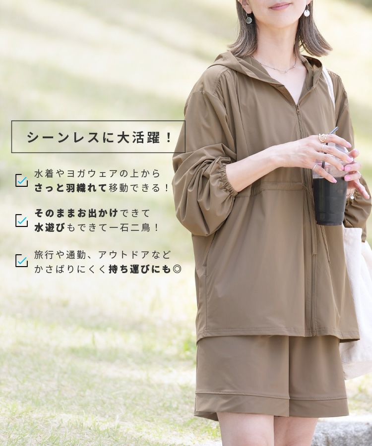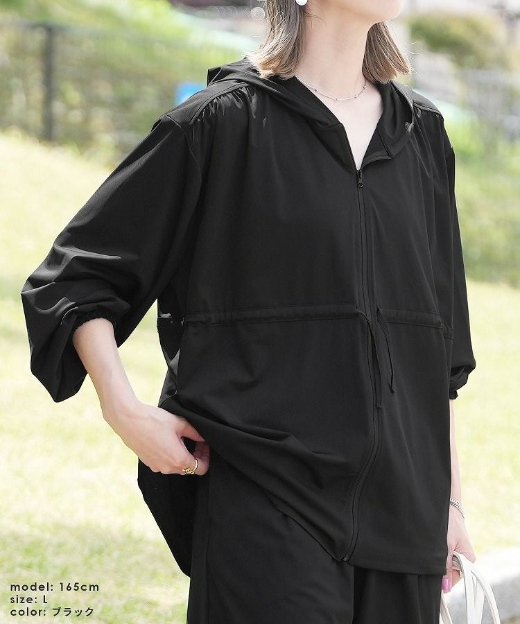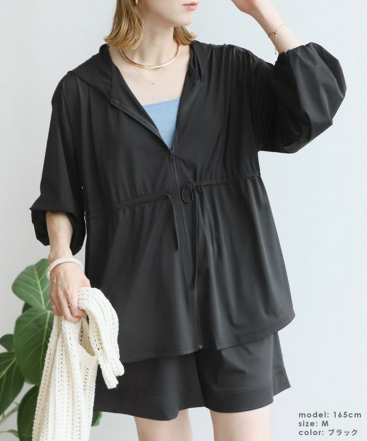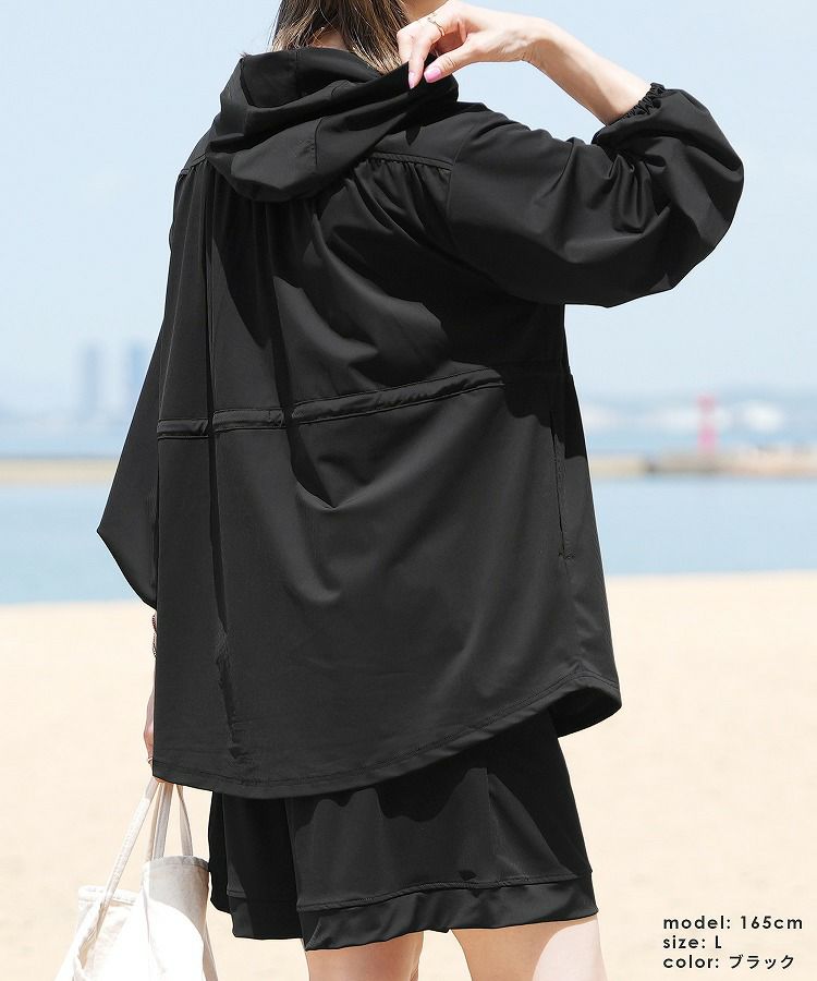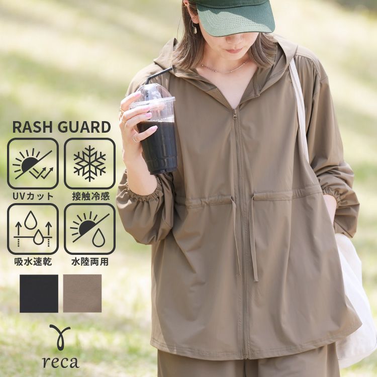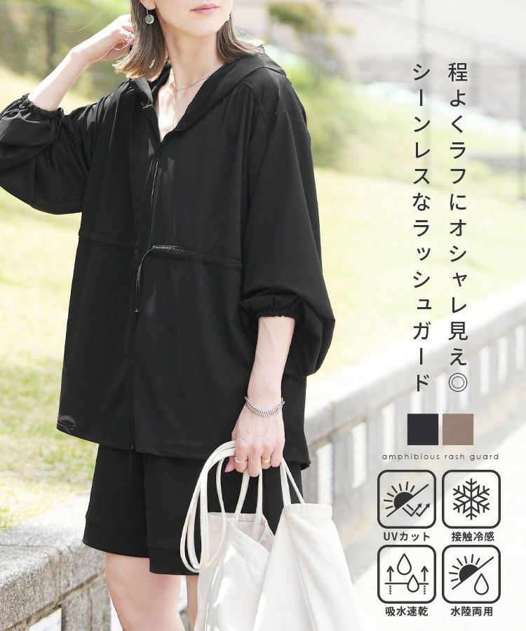レディース パーカー ジップアップ チャック トップス ラッシュガード 紫外線対策 水陸両用 UVカット 接触冷感 吸水速乾 ストレッチ 伸縮 シンプル カジュアル 楽ちん 長袖 体型カバー プール 海 レジャー アウトドア タウンユース 大人女子 30代ファッション 30代コーデ ブラック 黒 モカ