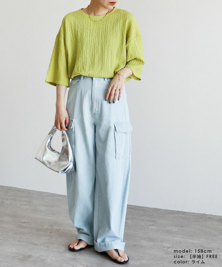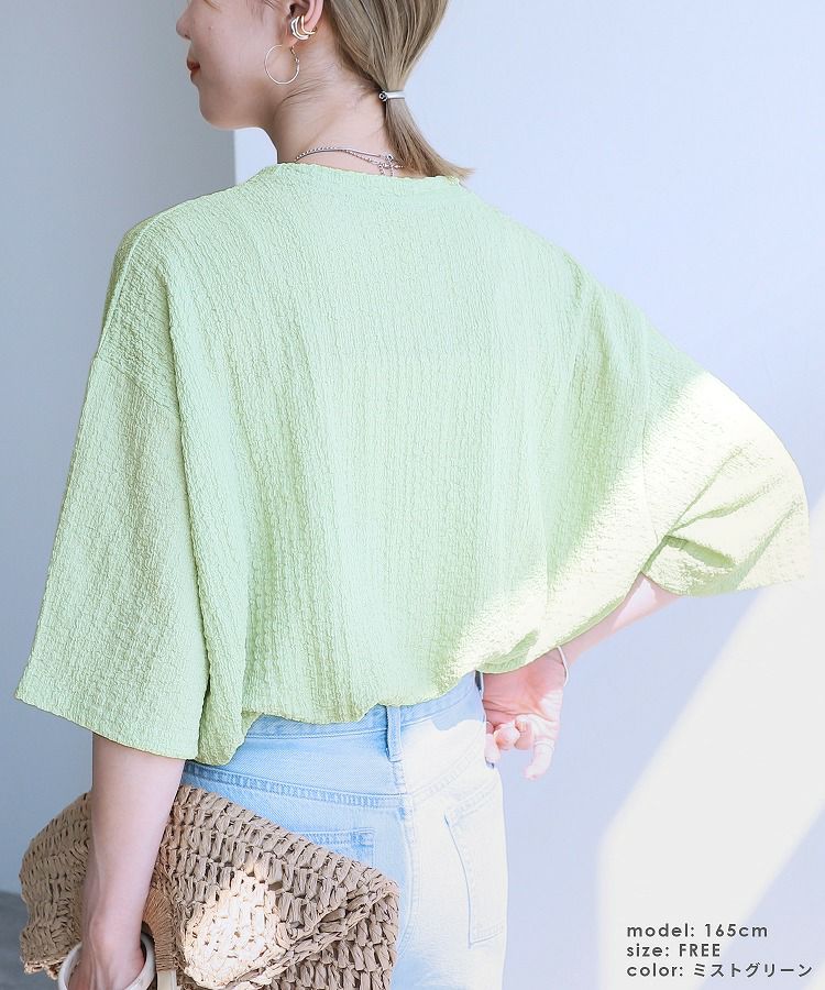 カットシャーリングデザインフレンチスリーブTシャツ(R24139-v) ネコポス発送10