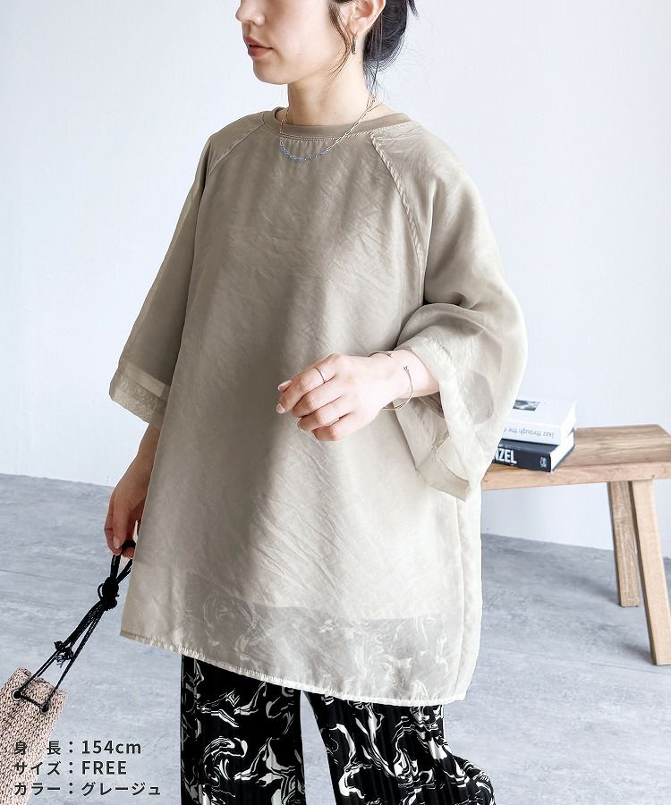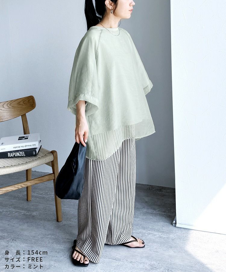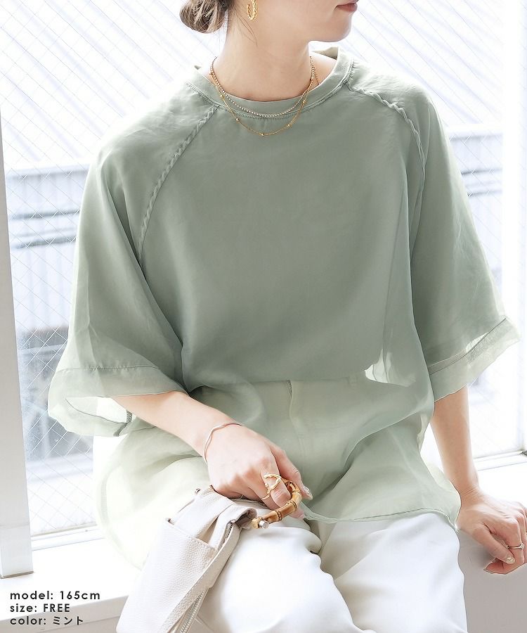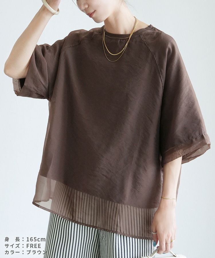 オーガンジー重ねラグラン半袖Tシャツ(day252630) ネコポス発送10