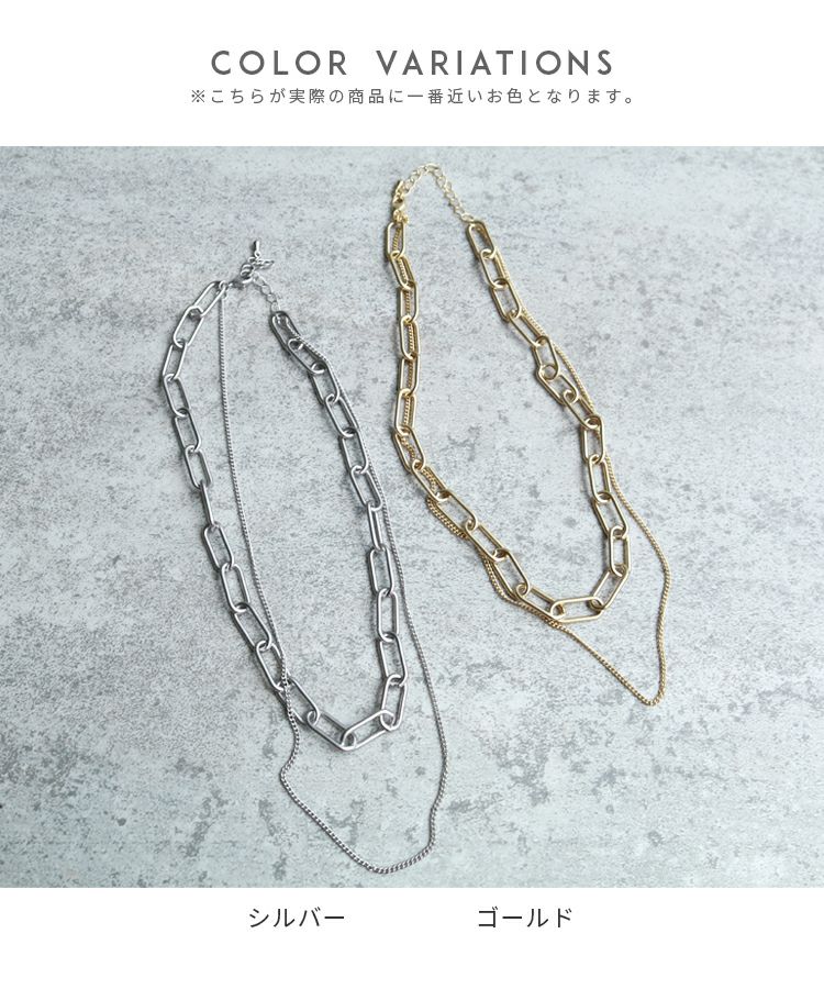 レディース アクセサリー ネックレス チェーン 2連 ダブルチェーン 真鍮 韓国 カジュアル ストリート シンプル 大人女子 30代ファッション 30代コーデ ファッション小物 アクセ おでかけ シルバー ゴールド