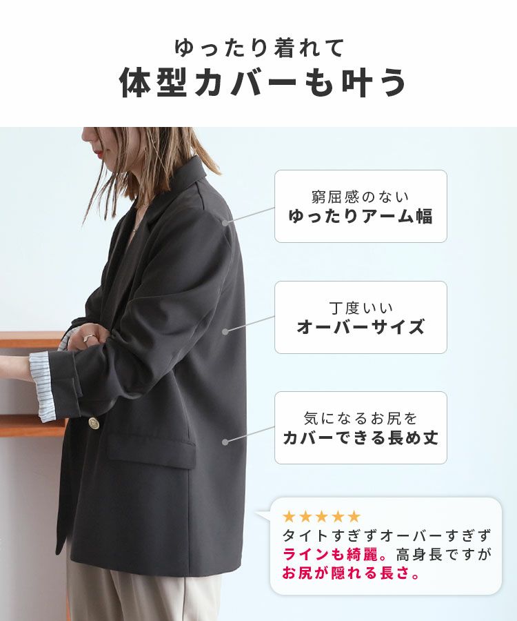 レディース アウター ダブルジャケット 長袖 ミドル ツイル 裏地付き ゆったり 大きめ ポケット ボタン 金ボタン カジュアル シンプル キレイめ オーバーサイズ 大人女子 30代ファッション 30代コーデ 40代ファッション 40代コーデ ネイビー 紺