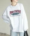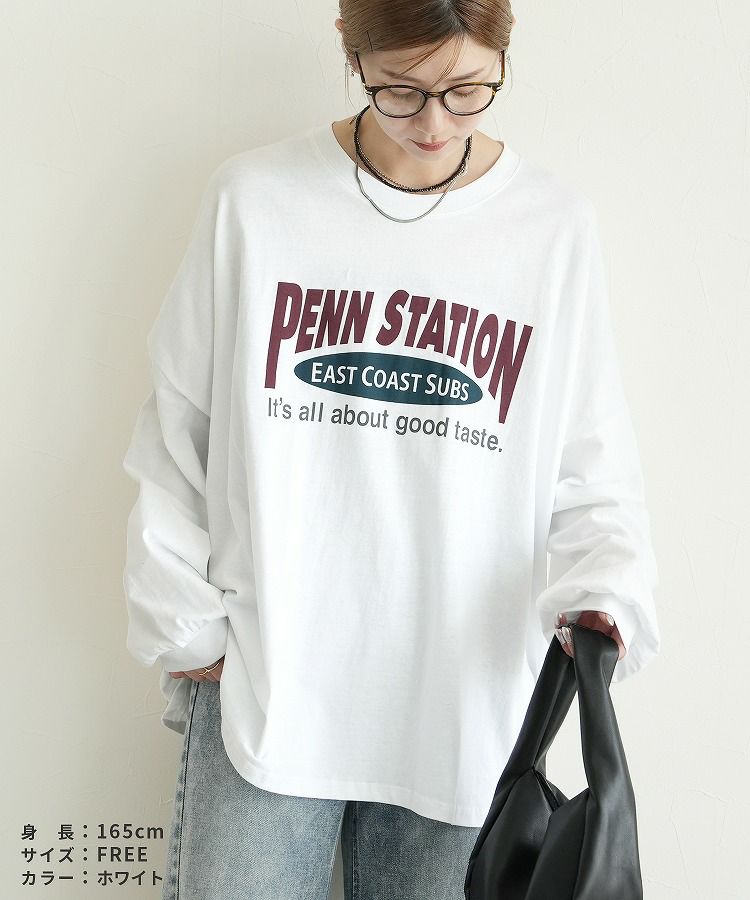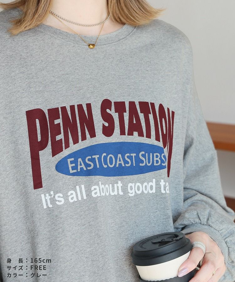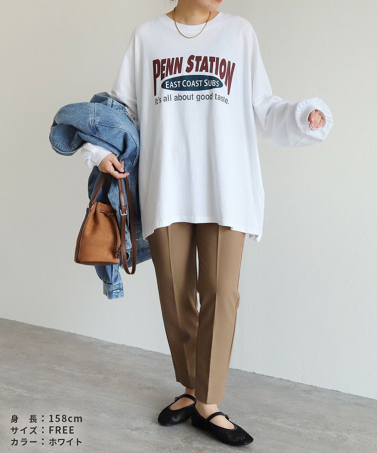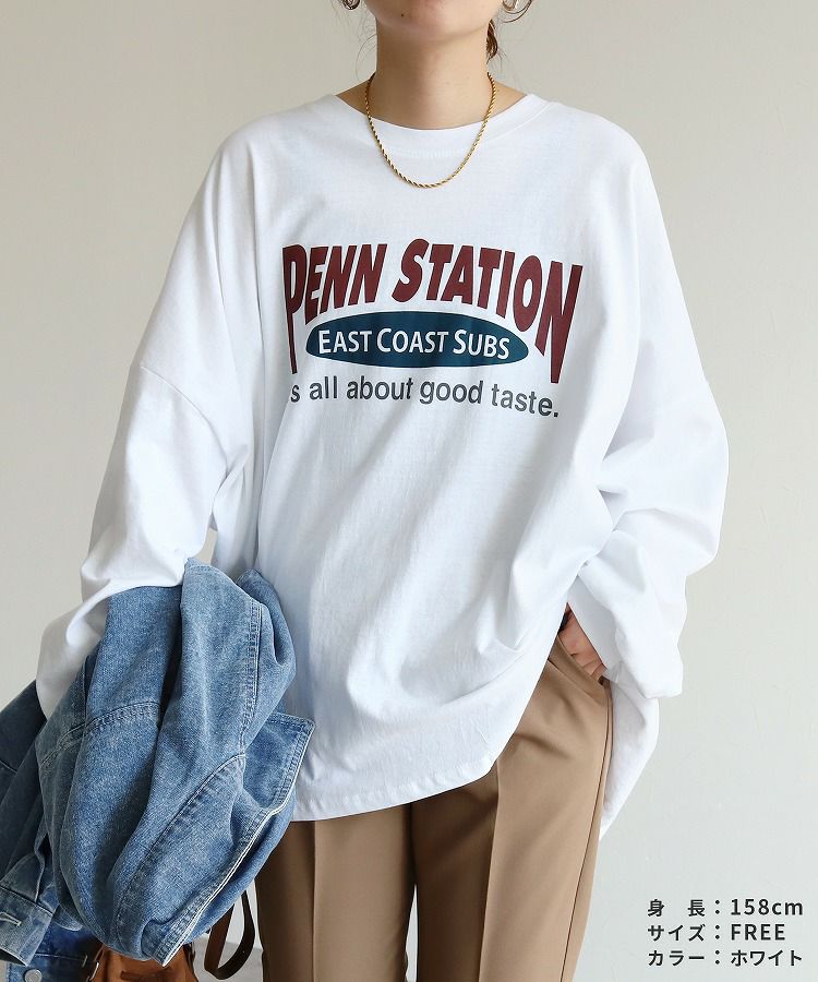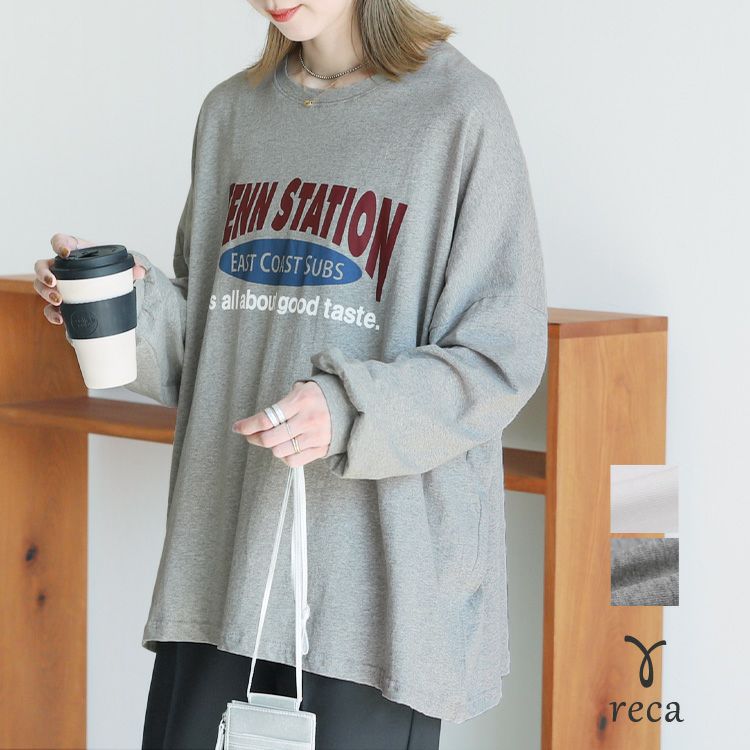 レディース トップス プルオーバー Tシャツ ロンT ロゴT ロゴ プリントロゴ オーバーサイズ ビッグサイズ メンズライク ヴィンテージ 秋 長袖 クルーネック 丸首 カジュアル シンプル 大人女子 30代ファッション 30代コーデ プリント オートミール ホワイト 白 ブラック 黒 グレー