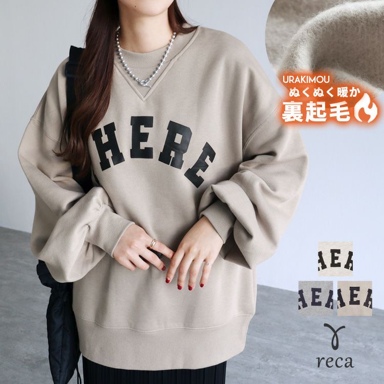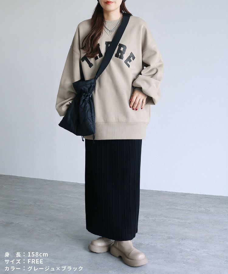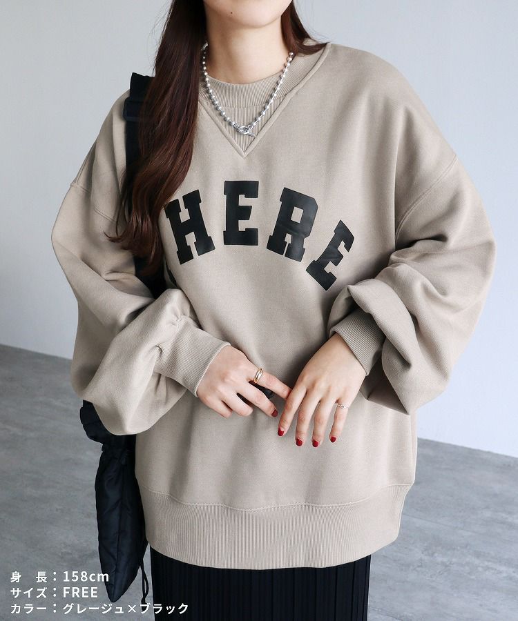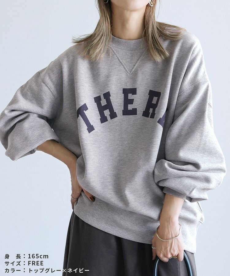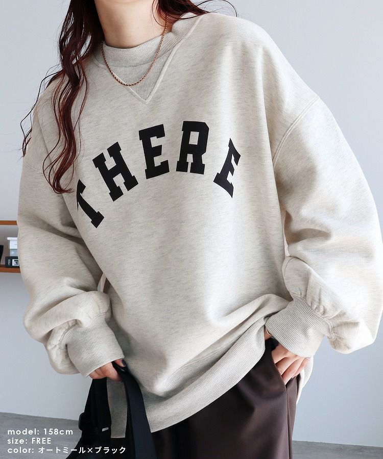 レディース トップス スウェット トレーナー プルオーバー ロゴプリント ロゴ ロゴスウェット ビッグロゴ 体型カバー ゆったり ルーズ たぽん袖 長袖 クルーネック 丸首 カジュアル シンプル 裏起毛 大人女子 30代ファッション 30代コーデ プリント オートミール ホワイト 白 ブラック 黒 チャコール グレー グレージュ モカ