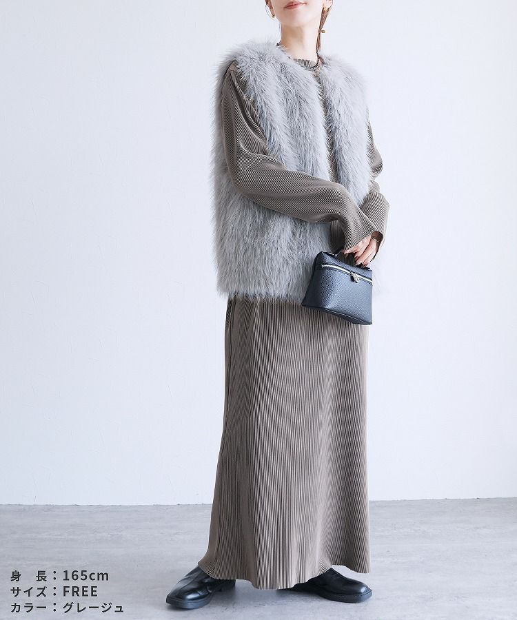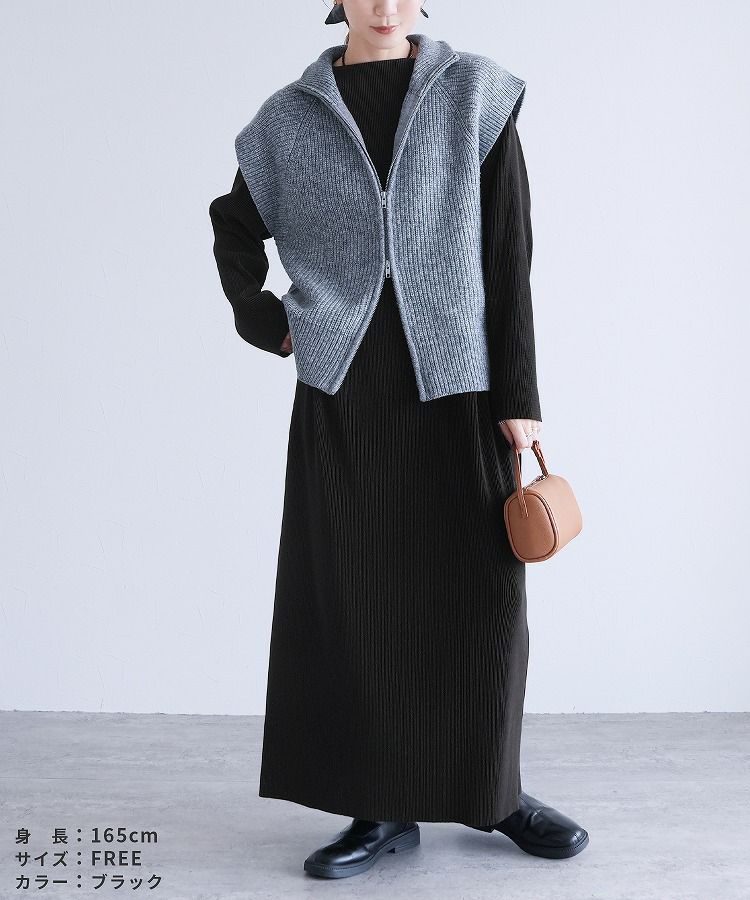 セルフカット長袖マキシプリーツワンピース(bel-blc-6404) 宅配便発送