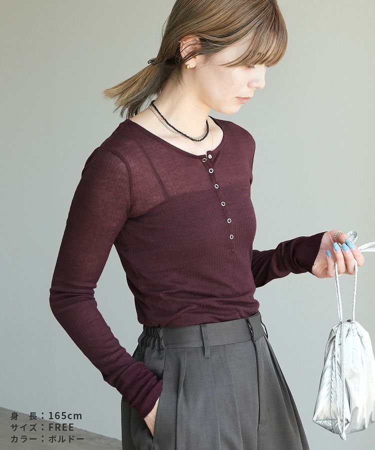 シアーテレコヘンリーネックトップス(day254521) reca レカ ネコポス発送10