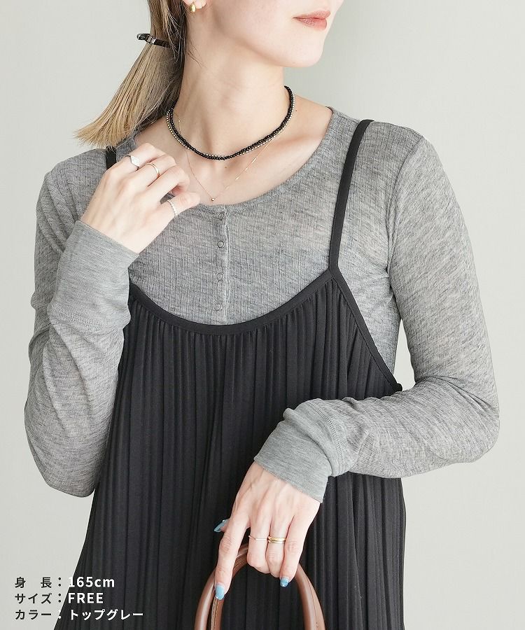 コーデアイテム:シアーテレコヘンリーネックトップス/トップグレー