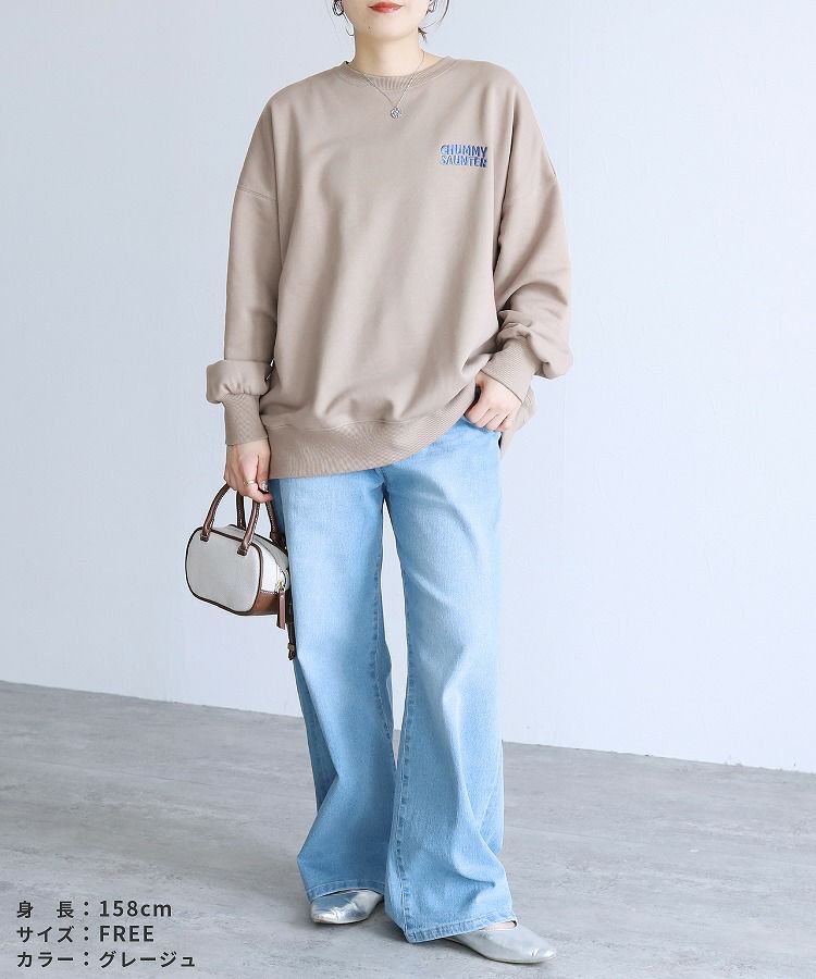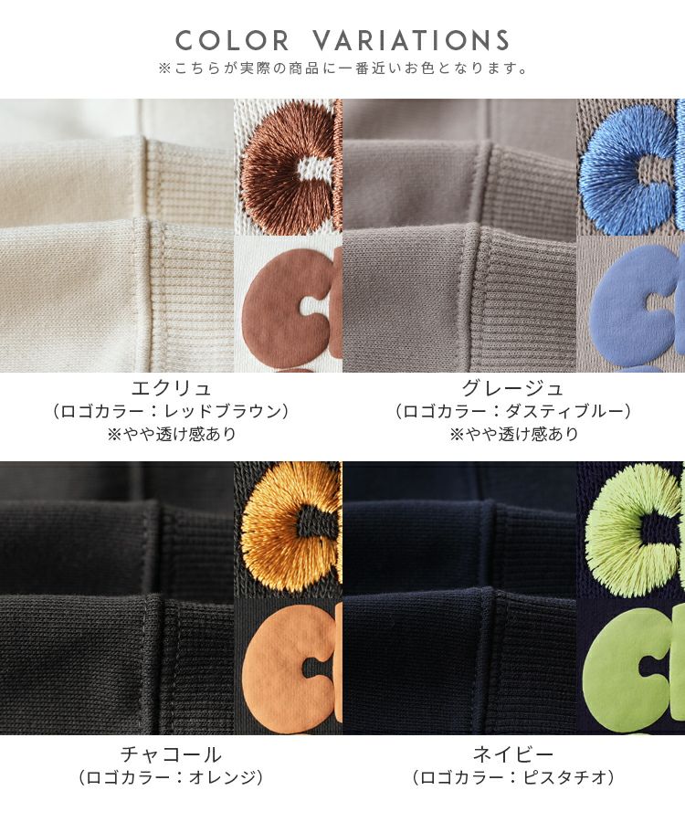 レディース トップス スウェット トレーナー プルオーバー オーバーサイズ メンズライク ロゴ ロゴ刺繍 ロゴスウェット ロゴT 発泡プリント キャラクター 前後ロゴ ワンポイント 長袖 クルーネック 丸首 カジュアル シンプル 大人女子 30代ファッション 30代コーデ プリント 配色 バイカラー オートミール エクリュ ホワイト 白 チャコール グレー ブルー オレンジ レッド ライトイエロー グリーン