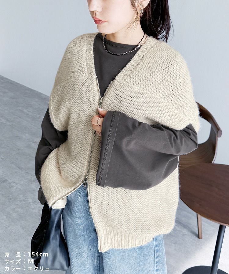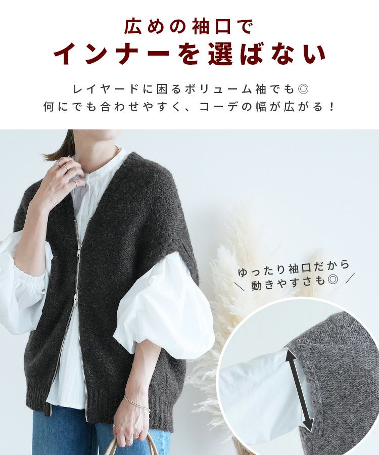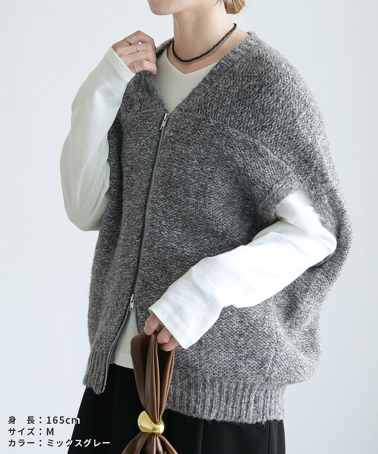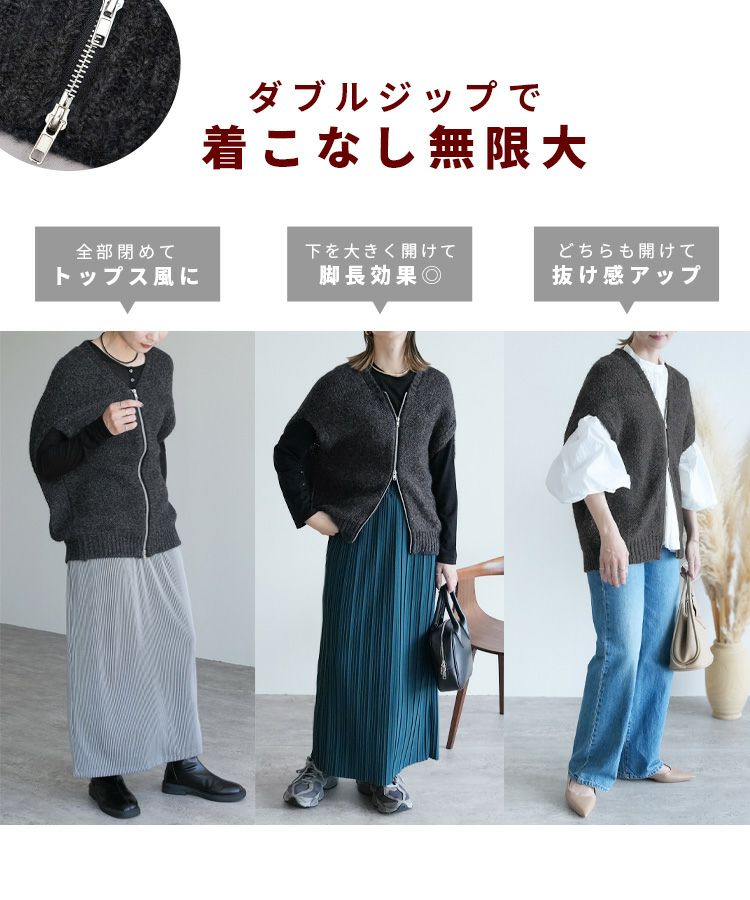 レディース トップス ニット ベスト ダブルジップ ファスナー ミックス糸 ミックスカラー カジュアル シンプル 楽ちん 大人女子 30代ファッション 30代コーデ ミックスグレー ブラック エクリュ