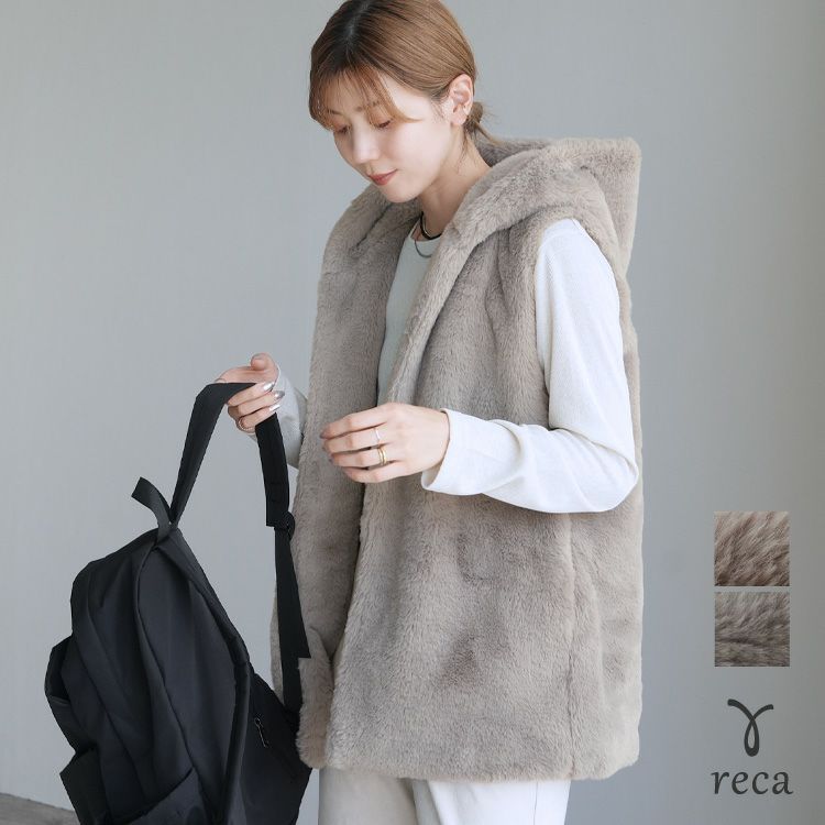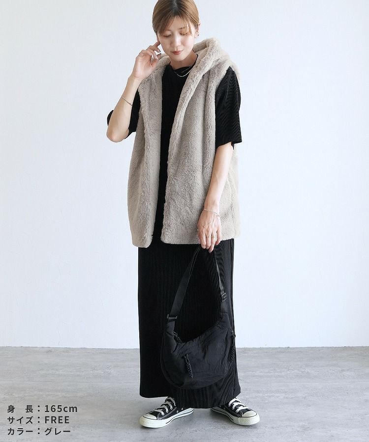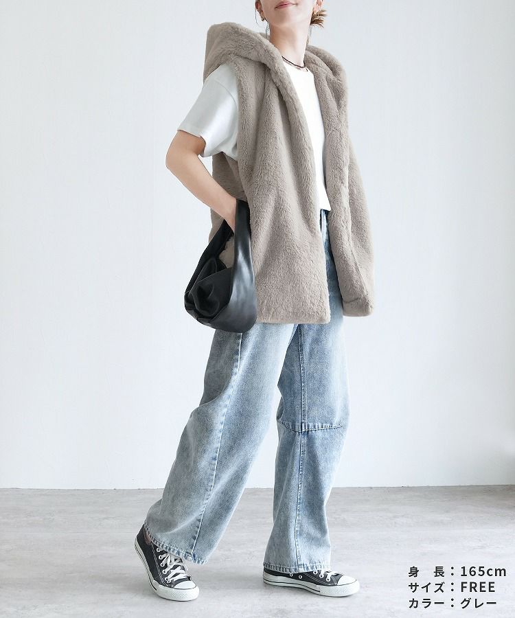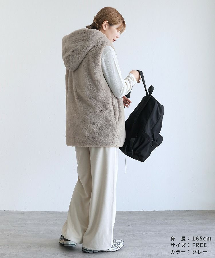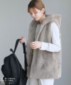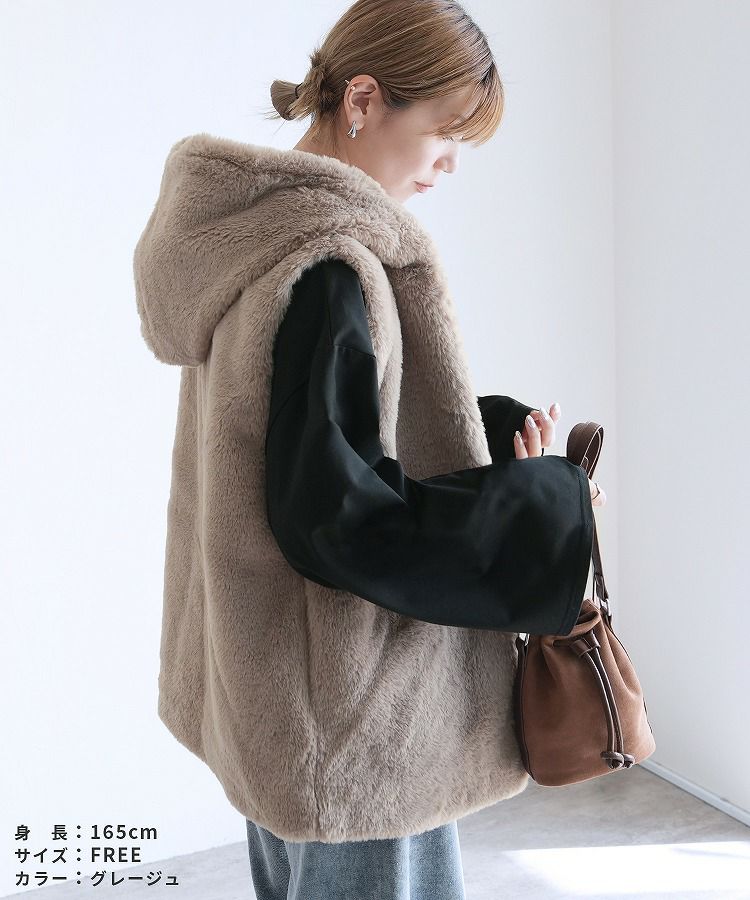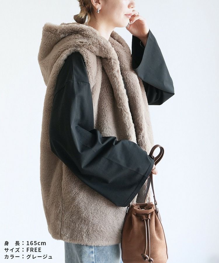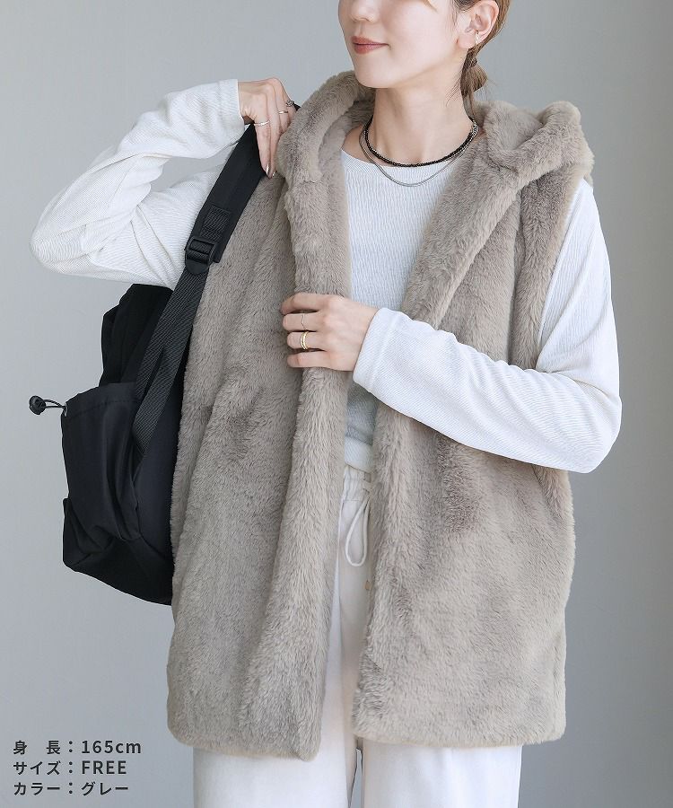 レディース 2025年秋新作 アウター ベスト ファーベスト フード ファー ポケット もこもこ 暖かい カジュアル シンプル 楽ちん 秋 大人女子 30代ファッション 30代コーデ グレージュ グレー