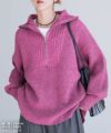 レディース トップス ニット セーター プルオーバー ハーフジップ デザインニット たぽん袖 ボリューム袖 長袖 ハイネック セーラーカラー ゆったり キレカジ カジュアル シンプル 大人女子 30代ファッション 30代コーデ 40代ファッション 40代コーデ 無地 ベージュ ピンク ブルー チャコールグレー チャコール グレー