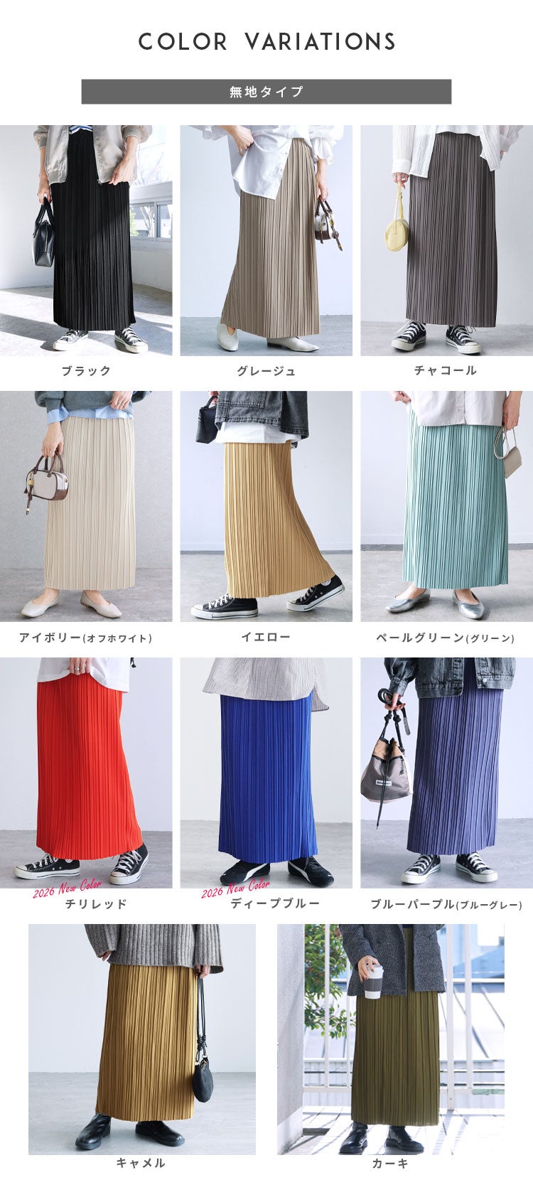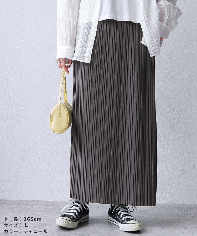 下半身カバー  レディース ボトムス スカート プリーツスカート プリーツ ロング ロング丈 ロングスカート ウエストゴム 楽ちん ギャザースカート 無地 プリーツ ランダムプリーツ リラックススカート キレイめ カジュアル 高見え 華やか 秋 大人女子 30代ファッション 30代コーデ 40代ファッション 40代コーデ ママコーデ トレンドコーデ くすみカラー ライトグリーン グレージュ イエロー 黄 ブラック 黒 春 夏 スプリング