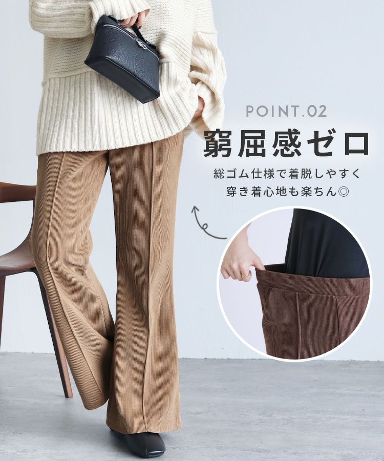 コーデュロイ裏フリースフレアパンツ(y2854) 2025年秋冬新作