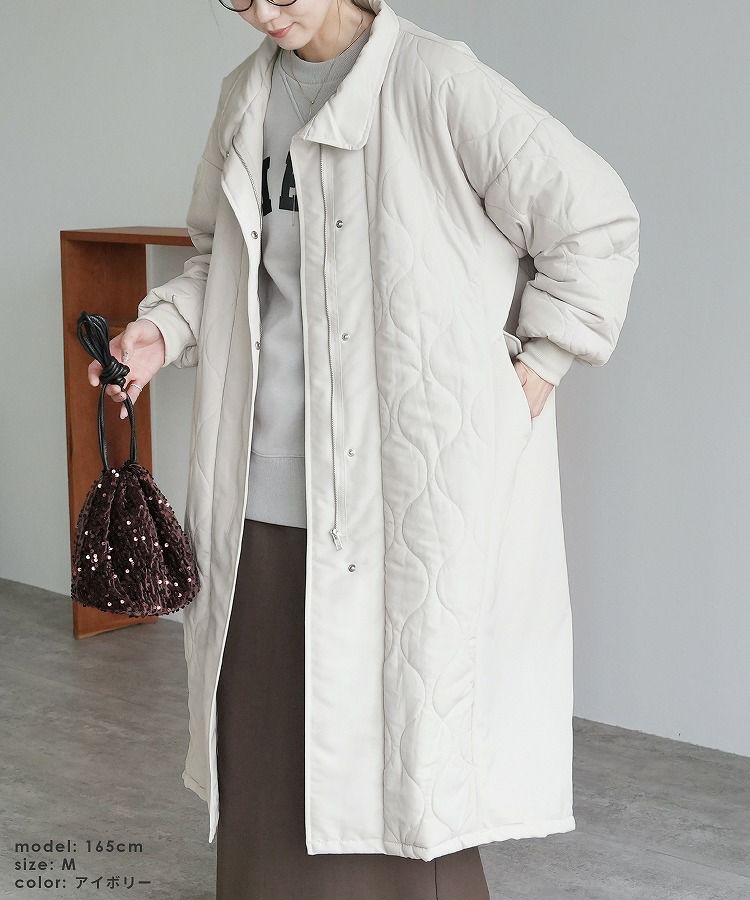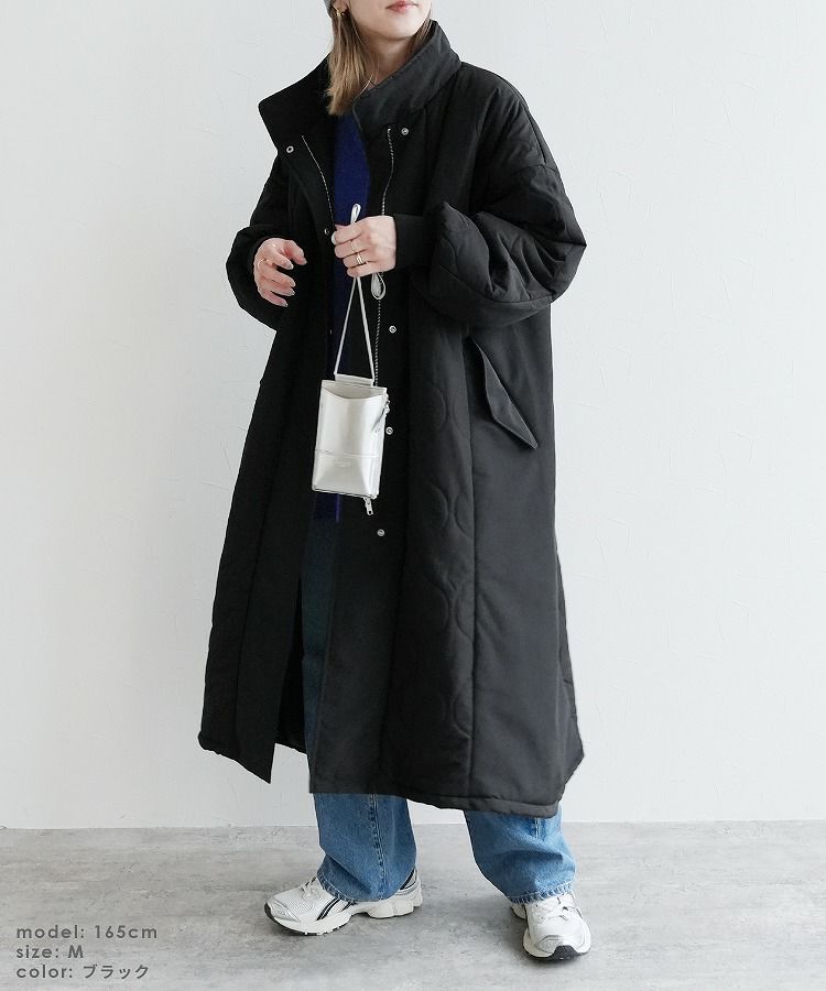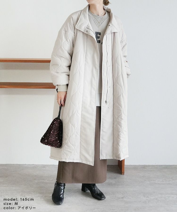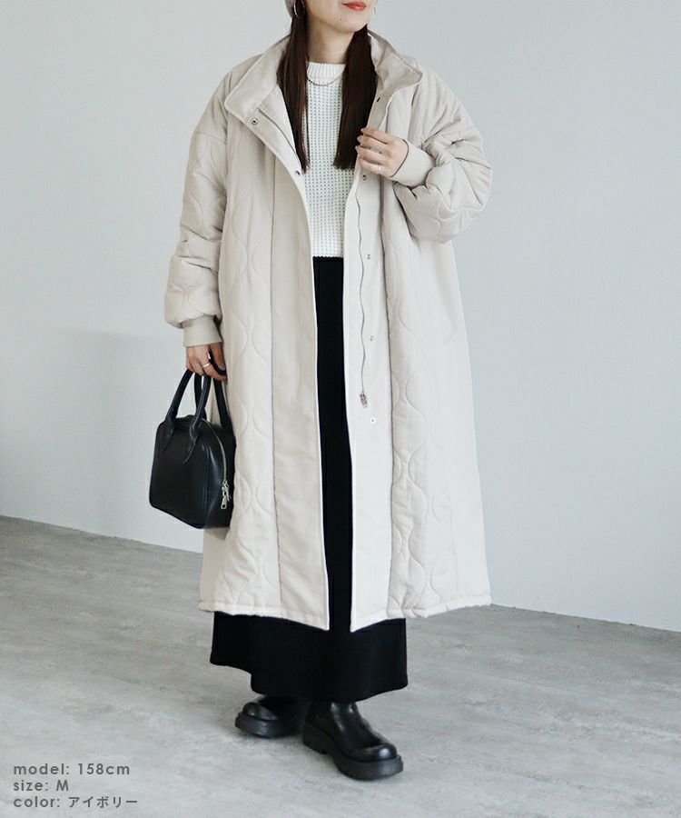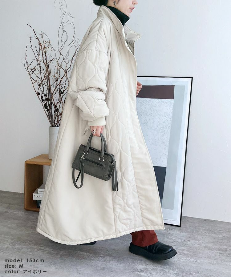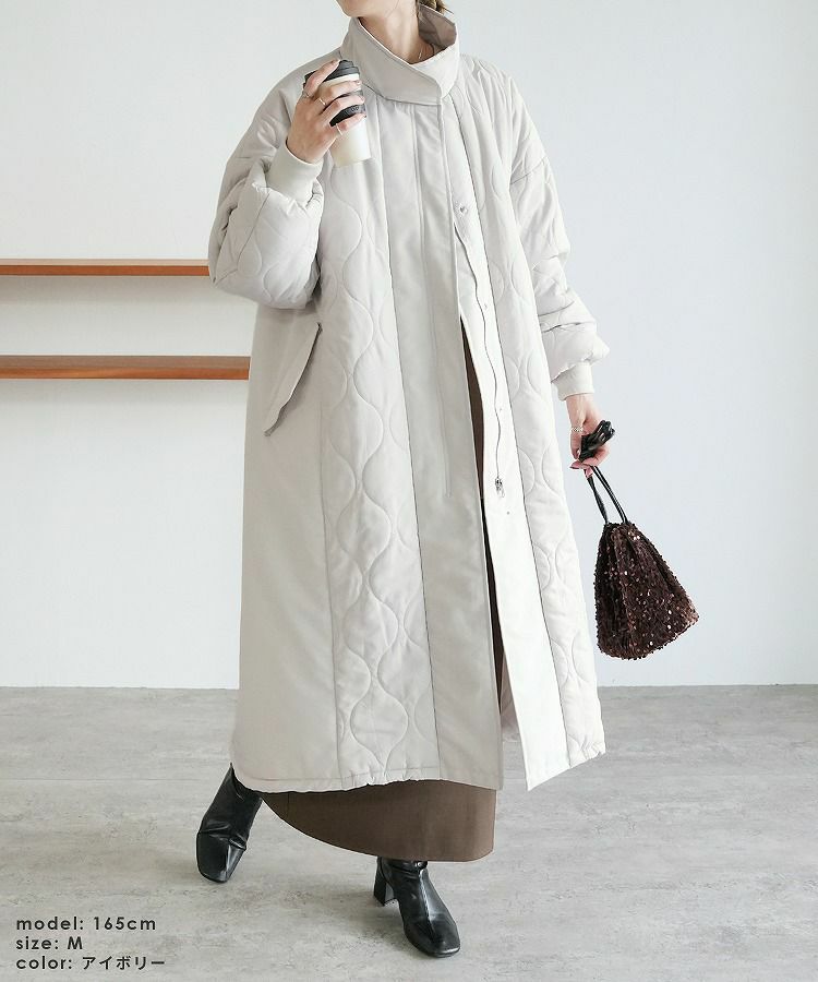 キルト切替スタンドネックロングコート(y8128) 宅配便発送